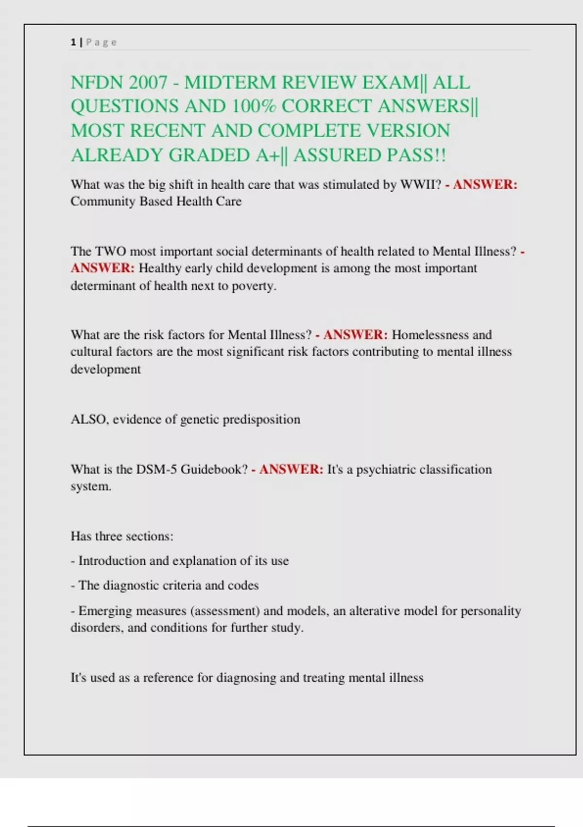 NFDN 2007 - MIDTERM REVIEW EXAM|| ALL QUESTIONS AND 100% CORRECT ANSWERS|| MOST RECENT AND COMPLETE VERSION ALREADY GRADED A+|| ASSURED PASS!!