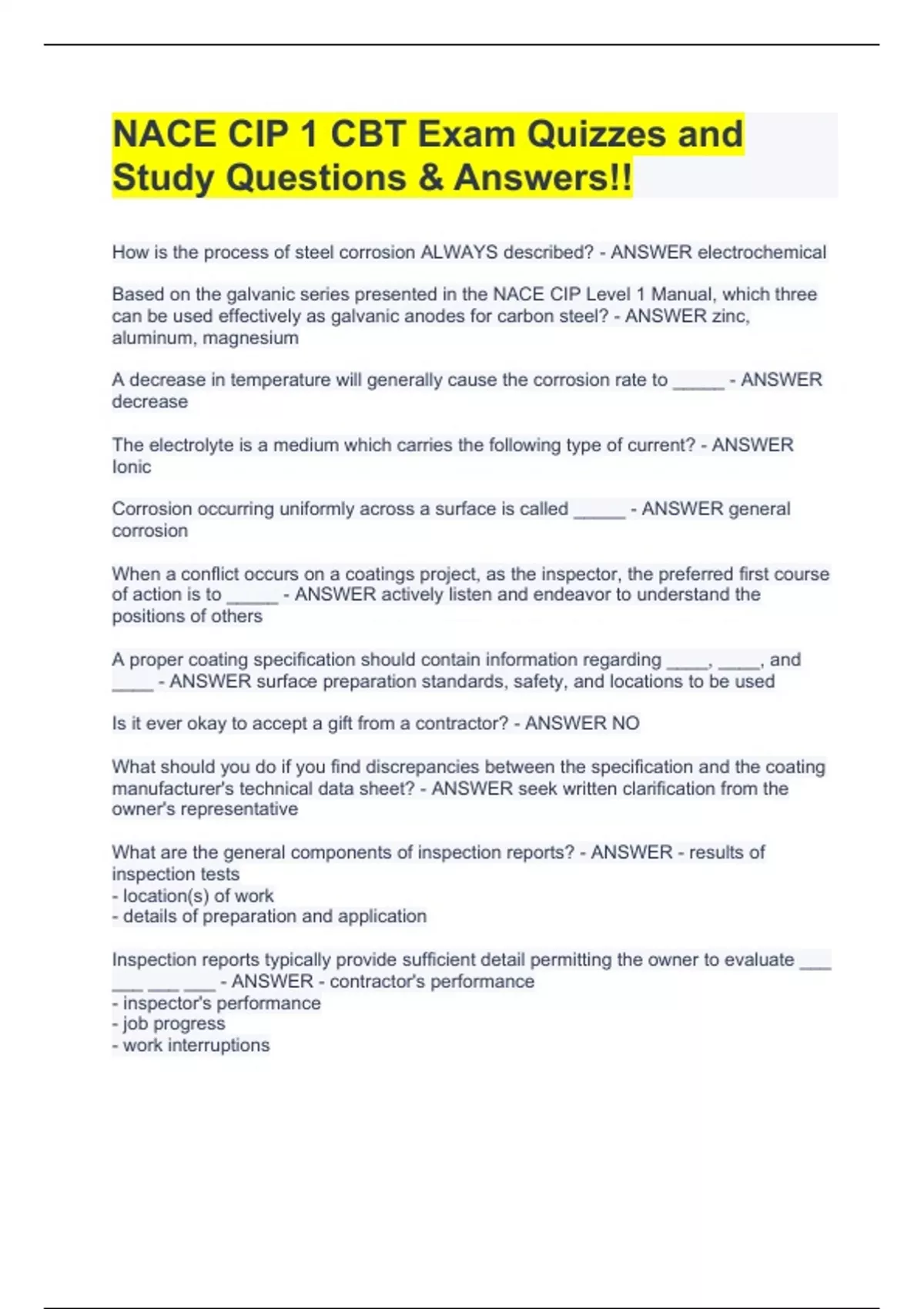 NACE CIP 1 CBT Exam Quizzes and Study Questions & Answers!!
