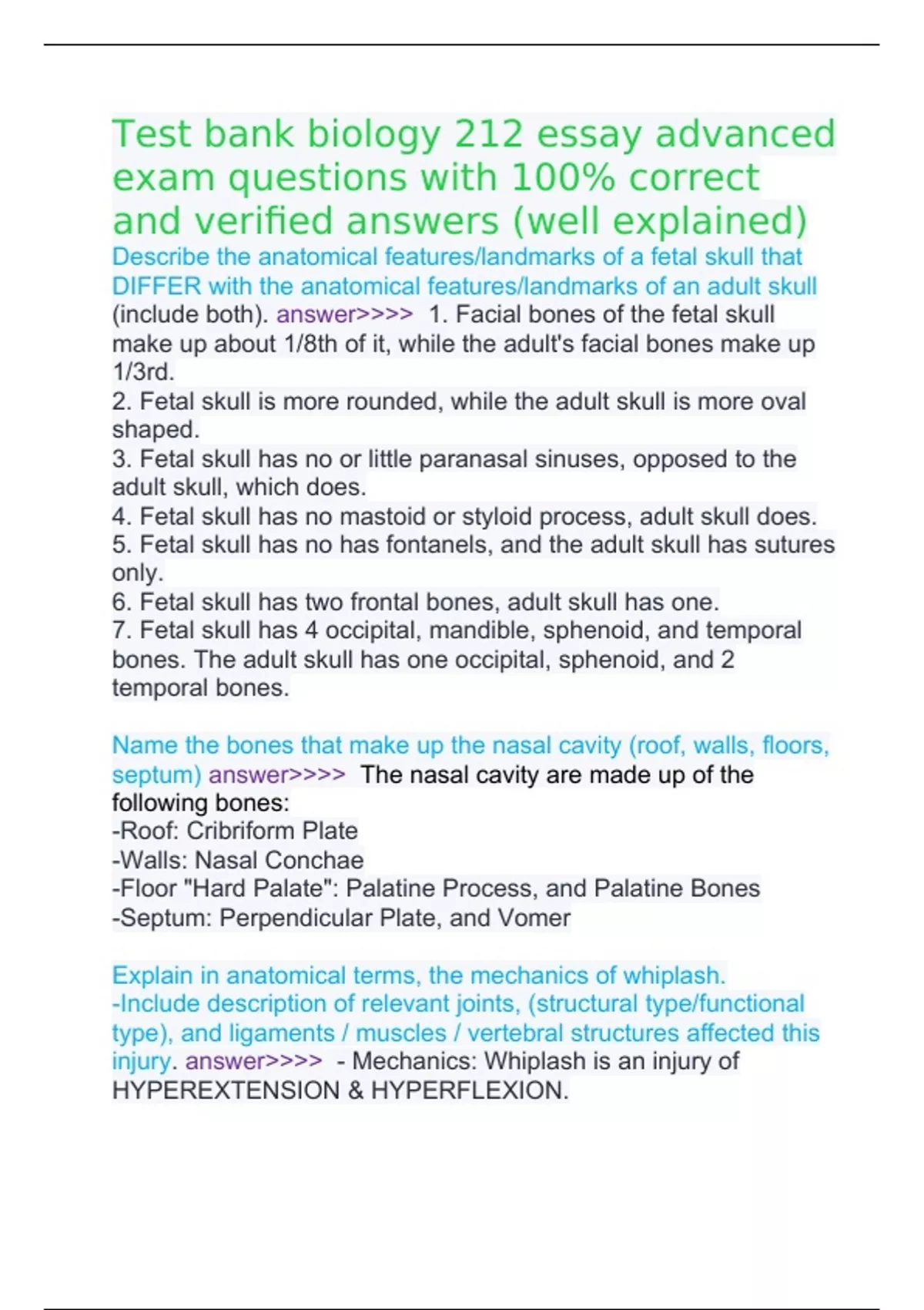 Test bank biology 212 essay advanced exam questions with 100% correct and verified answers (well explained) Test bank biology 212 essay advanced exam questions with 100% correct and verified answers (well explained) Test bank biology 212 essay advanced exam questions with 100% correct and verified answers (well explained)