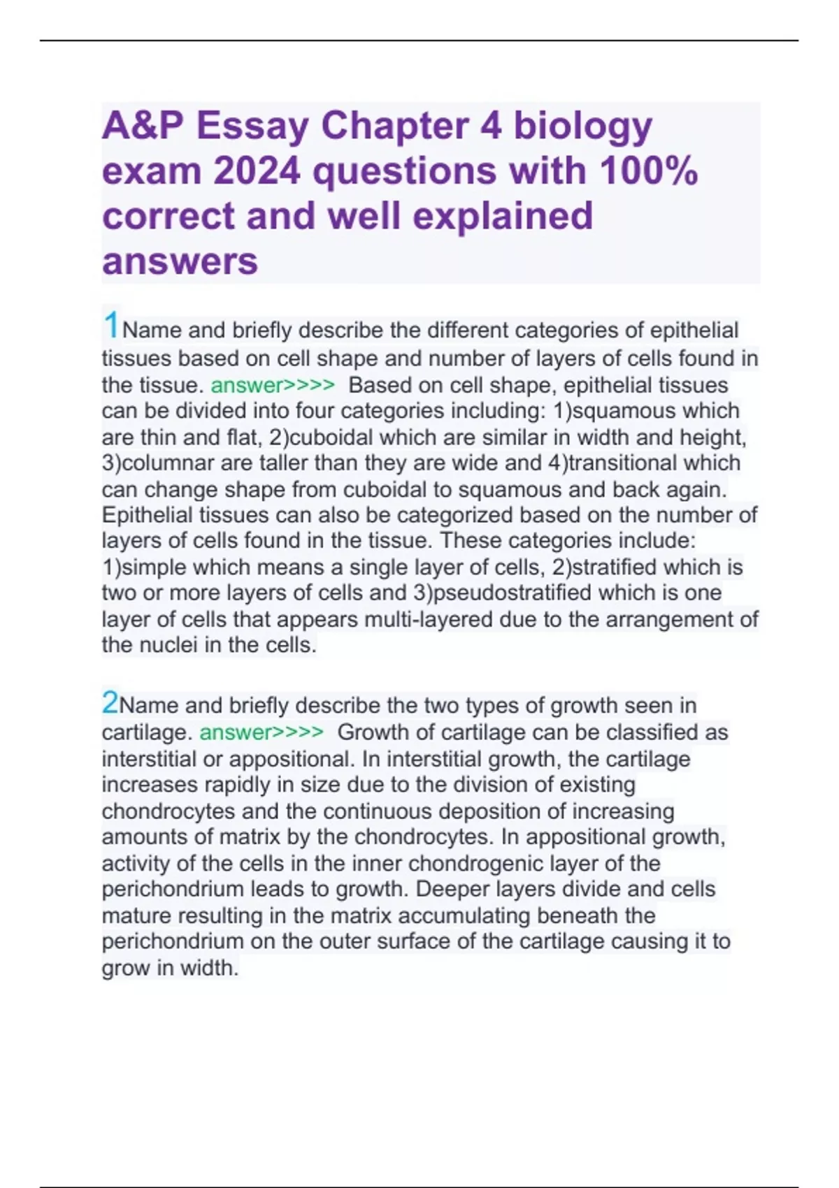 A&P Essay Chapter 4 biology exam 2024 questions with 100% correct and well explained answers