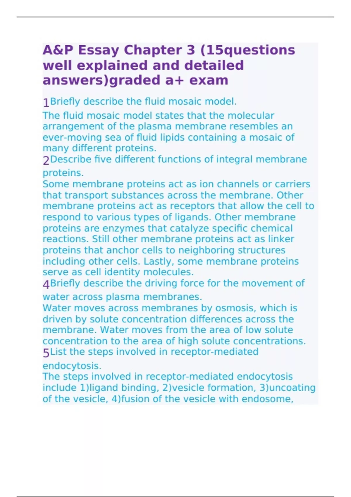 A&P Essay Chapter 3 (15questions well explained and detailed answers)graded a+ exam