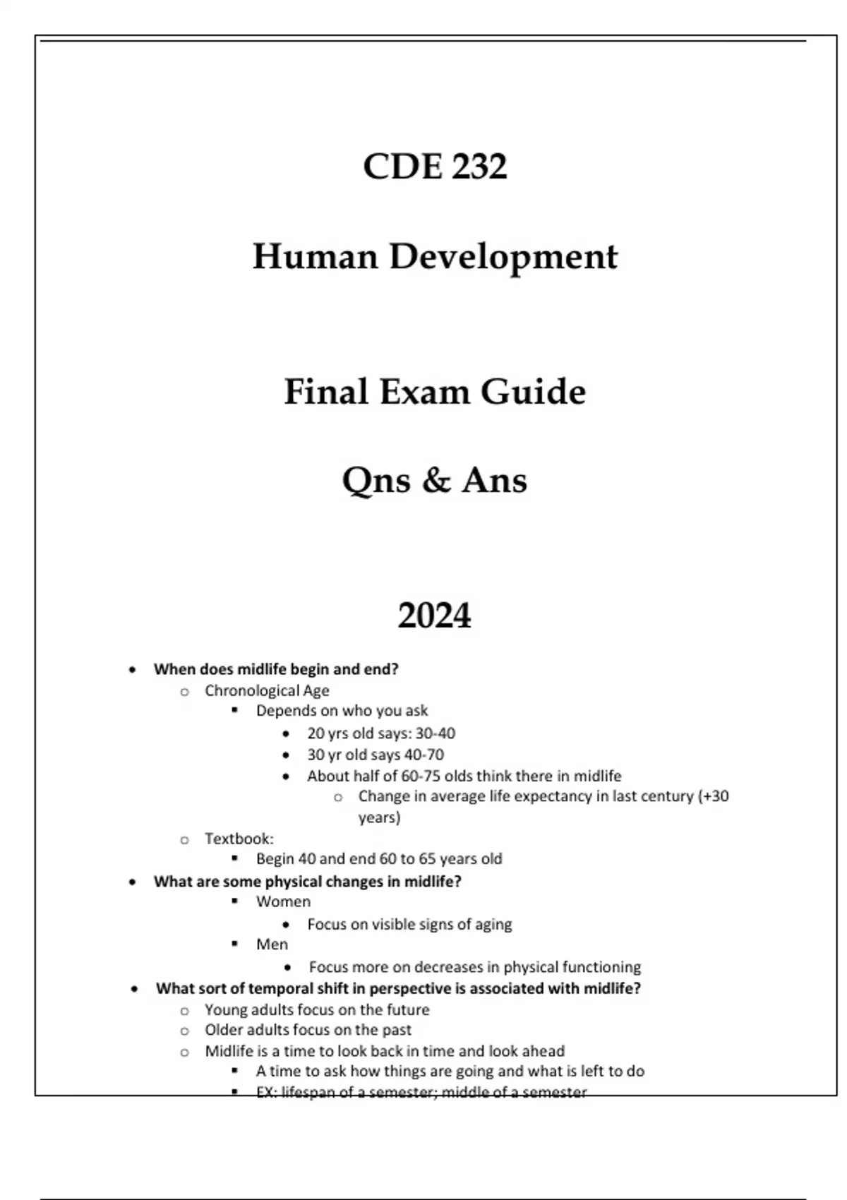 (ASU) CDE 232 HUMAN DEVELOPMENT (ASU) CDE 232 HUMAN DEVELOPMENT FINAL EXAM GUIDE QNS & ANS 2024.(ASU) CDE 232 HUMAN DEVELOPMENT FINAL EXAM GUIDE QNS & ANS 2024.(ASU) CDE 232 HUMAN DEVELOPMENT FINAL EXAM GUIDE QNS & ANS 2024.FINAL EXAM GUIDE QNS & ANS 2024.