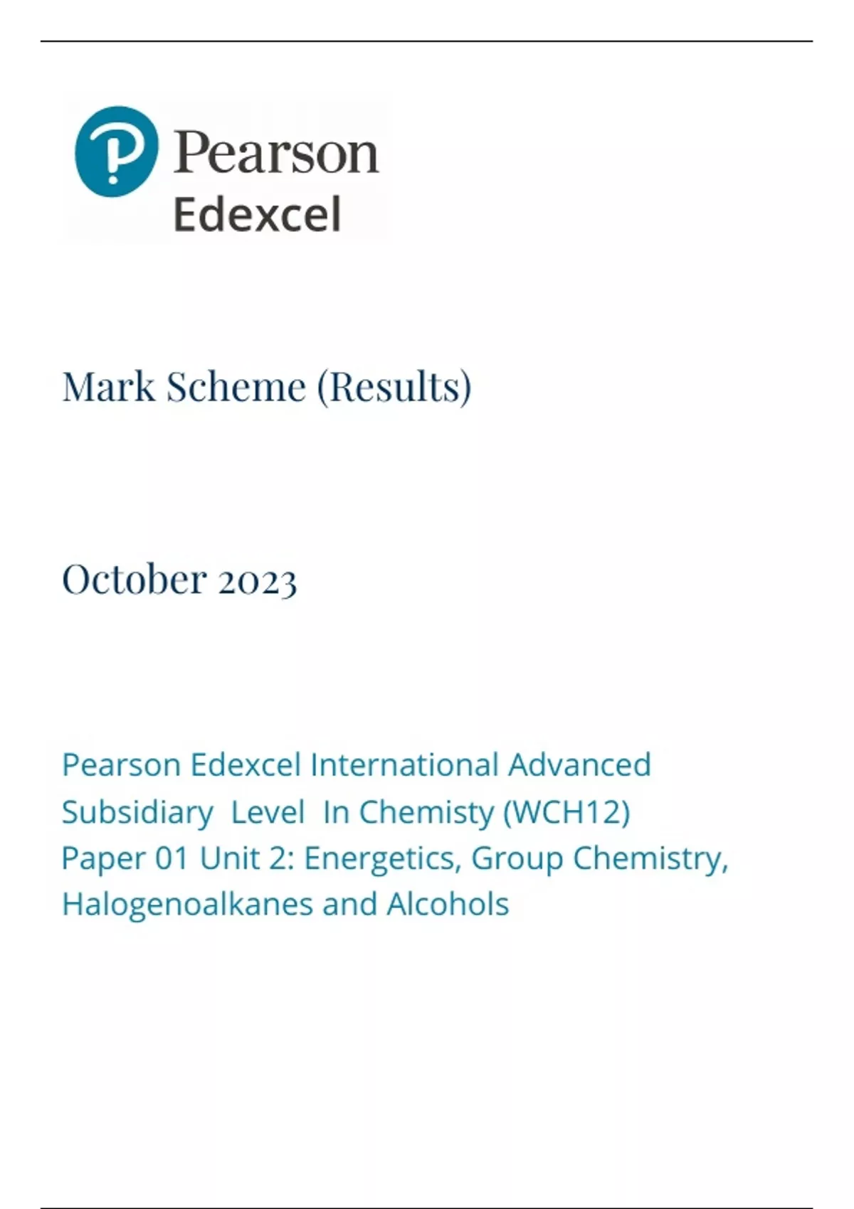 Pearson Edexcel International Advanced Subsidiary (AS) In Chemistry Paper 1 2023 Mark Scheme (WCH12/01 Unit 2: Energetics, Group Chemistry, Halogenoalkanes and Alcohols)