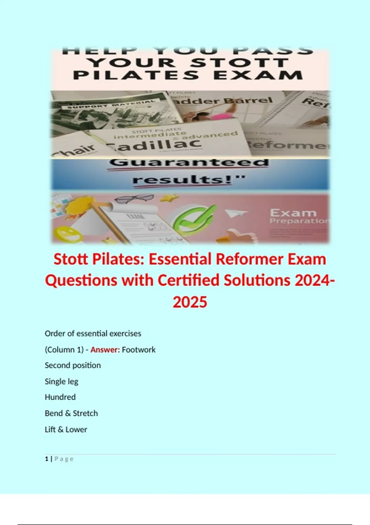 Stott Pilates: Essential Reformer Exam Questions with Certified Solutions