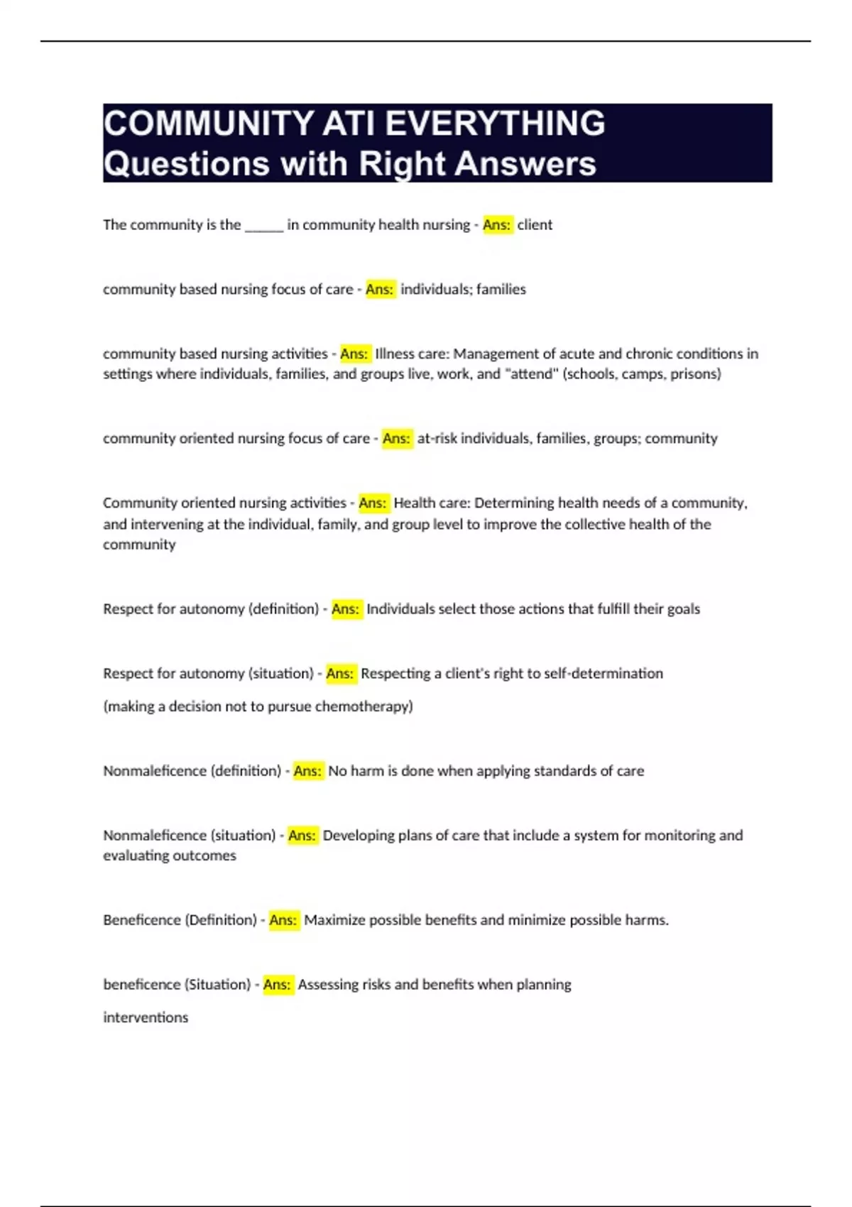 COMMUNITY ATI EVERYTHING Questions with Right Answers