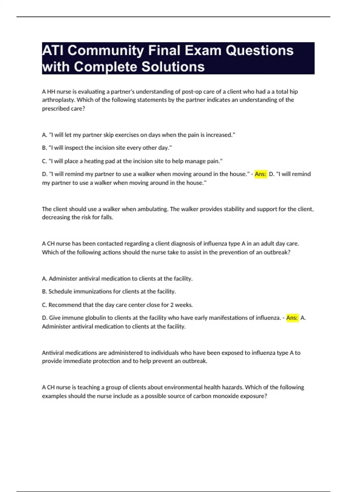 ati community final exam questions with complete s