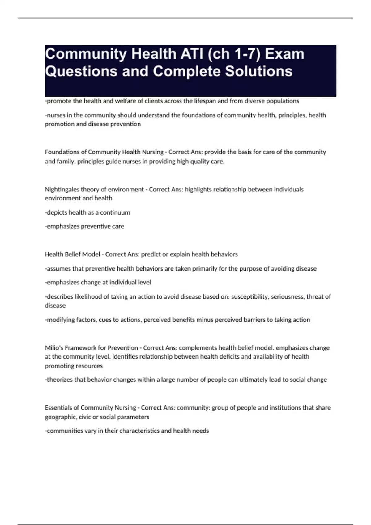 Community Health ATI (ch 1-7) Exam Questions and Complete Solutions