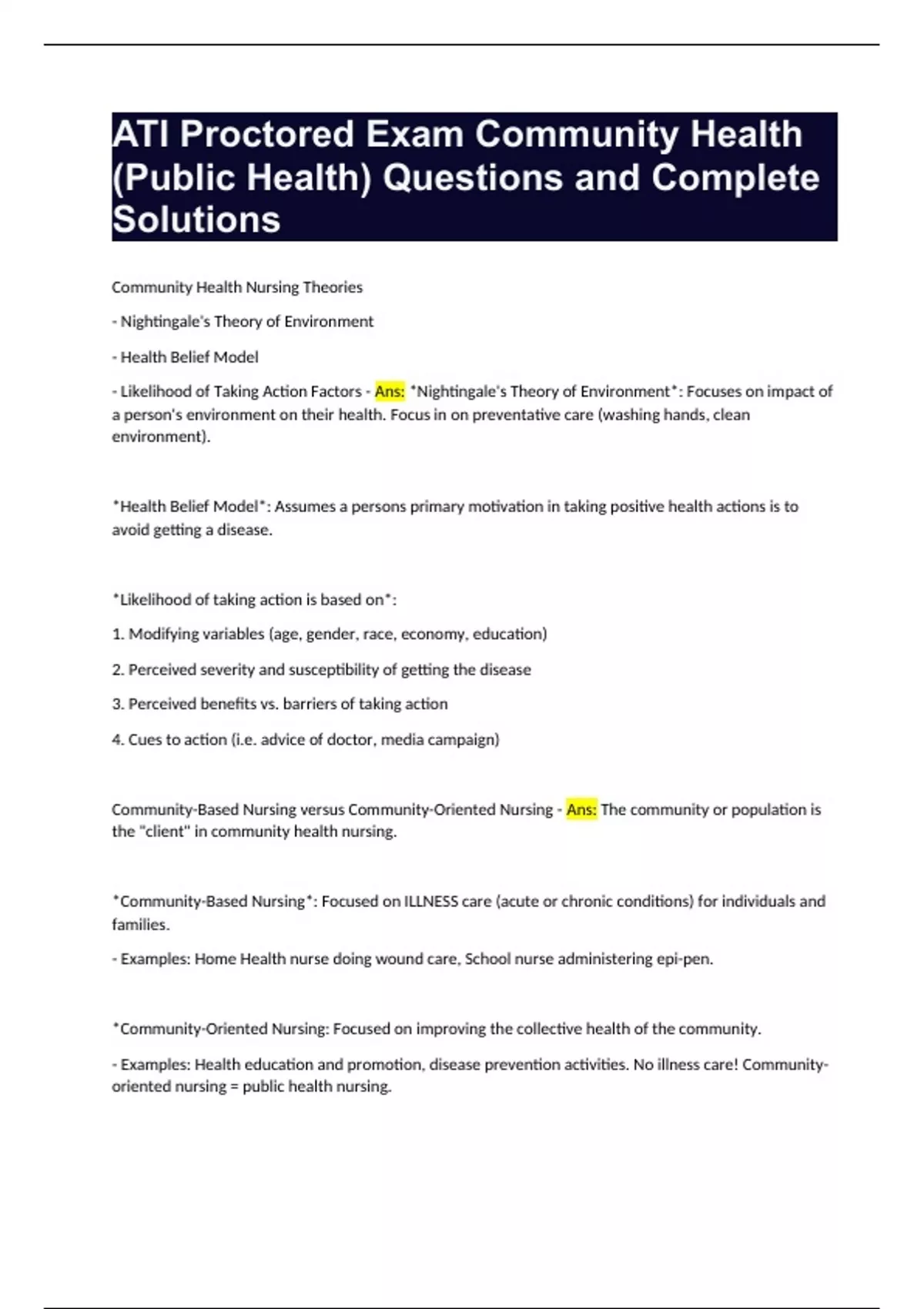 ATI Proctored Exam Community Health (Public Health) Questions and Complete Solutions