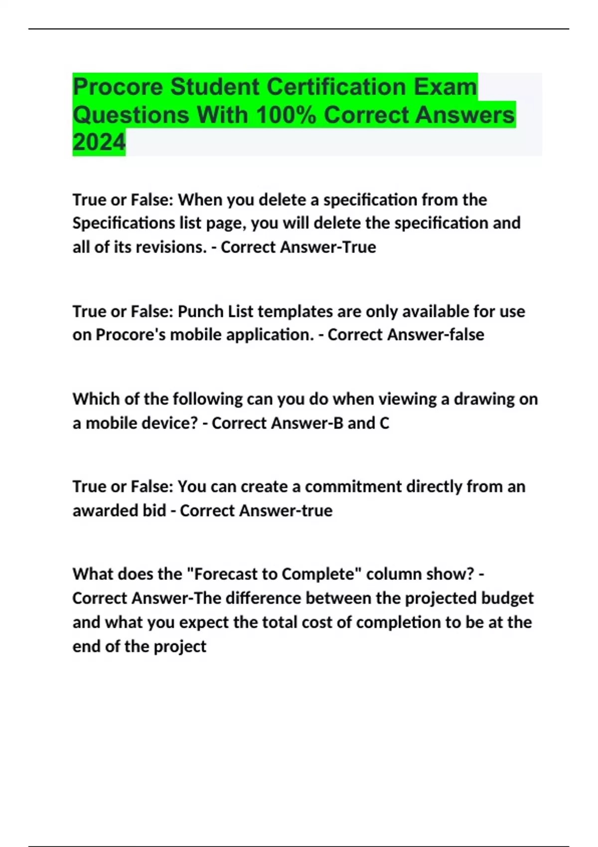 Procore Student Certification Exam Questions With 100% Correct Answers 2024