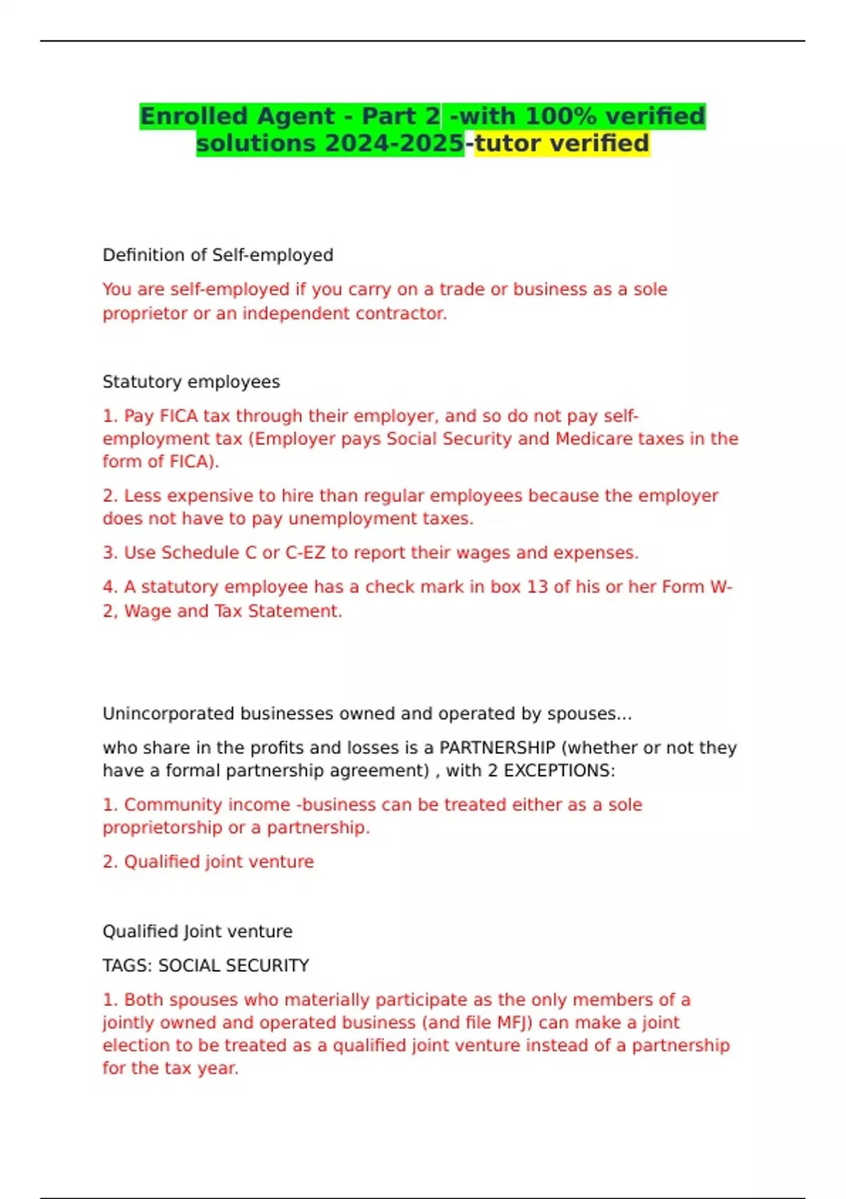 Enrolled Agent - Part 2 -with 100% verified solutions -tutor verified
