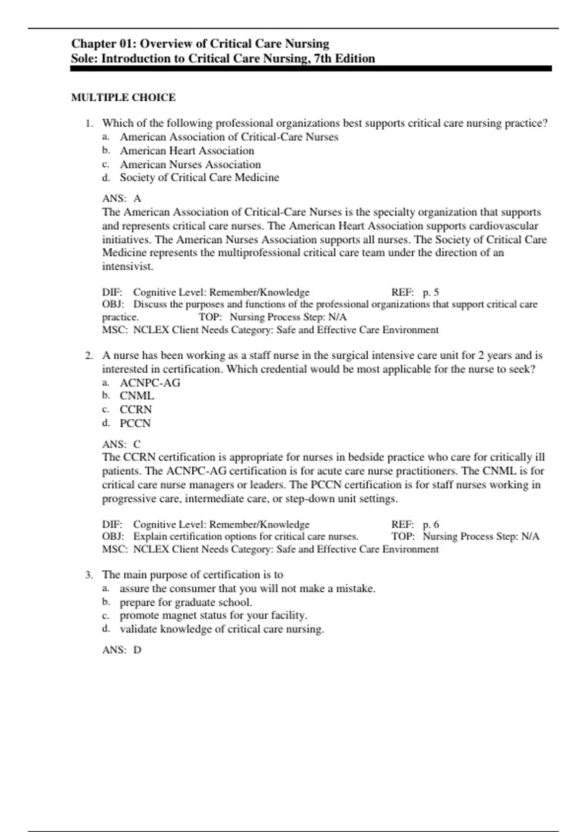 Introduction To Critical Care Nursing 7th Edition Sole Study Guide