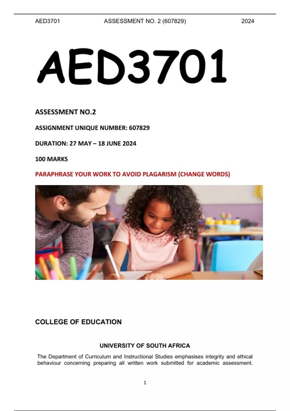 AED3701 ASSESSMENT NO. 2 (607829) 2024