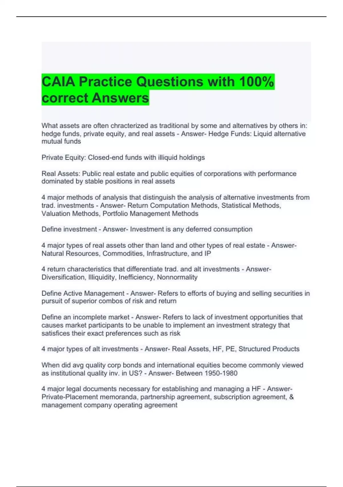 CAIA Exam Bundle (Graded A)