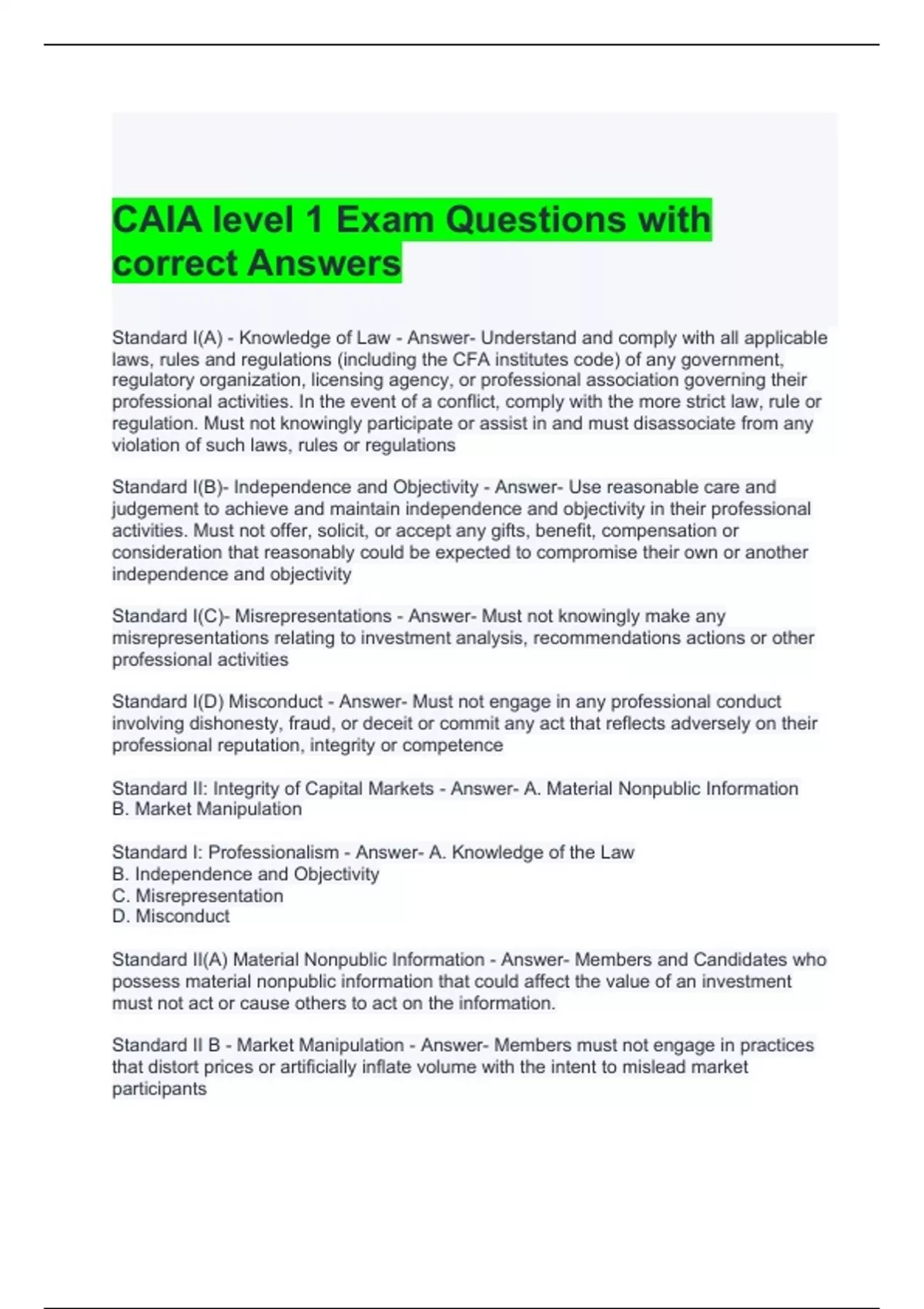 CAIA level 1 Exam Questions with correct Answers 2024 - Graded A