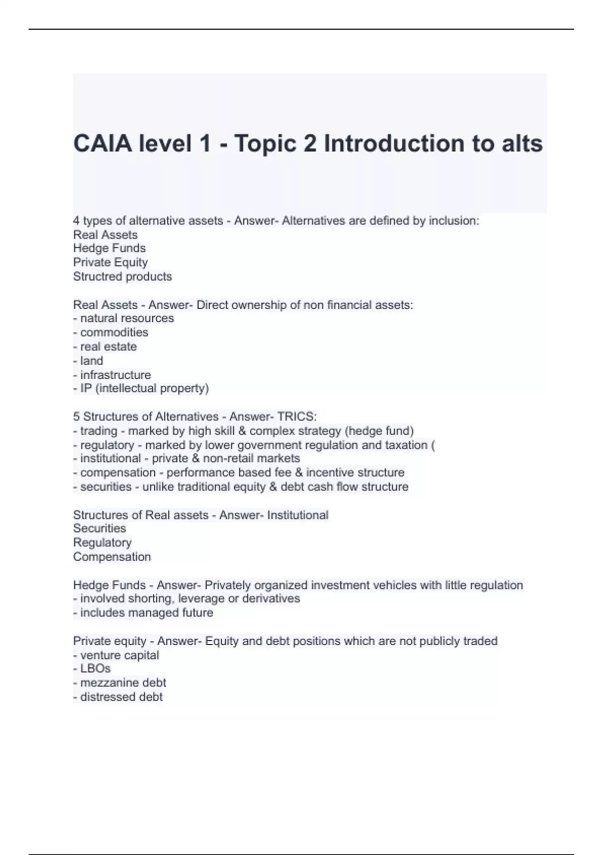CAIA level 1 - Topic 2 Introduction to alts Exam Questions and Answers