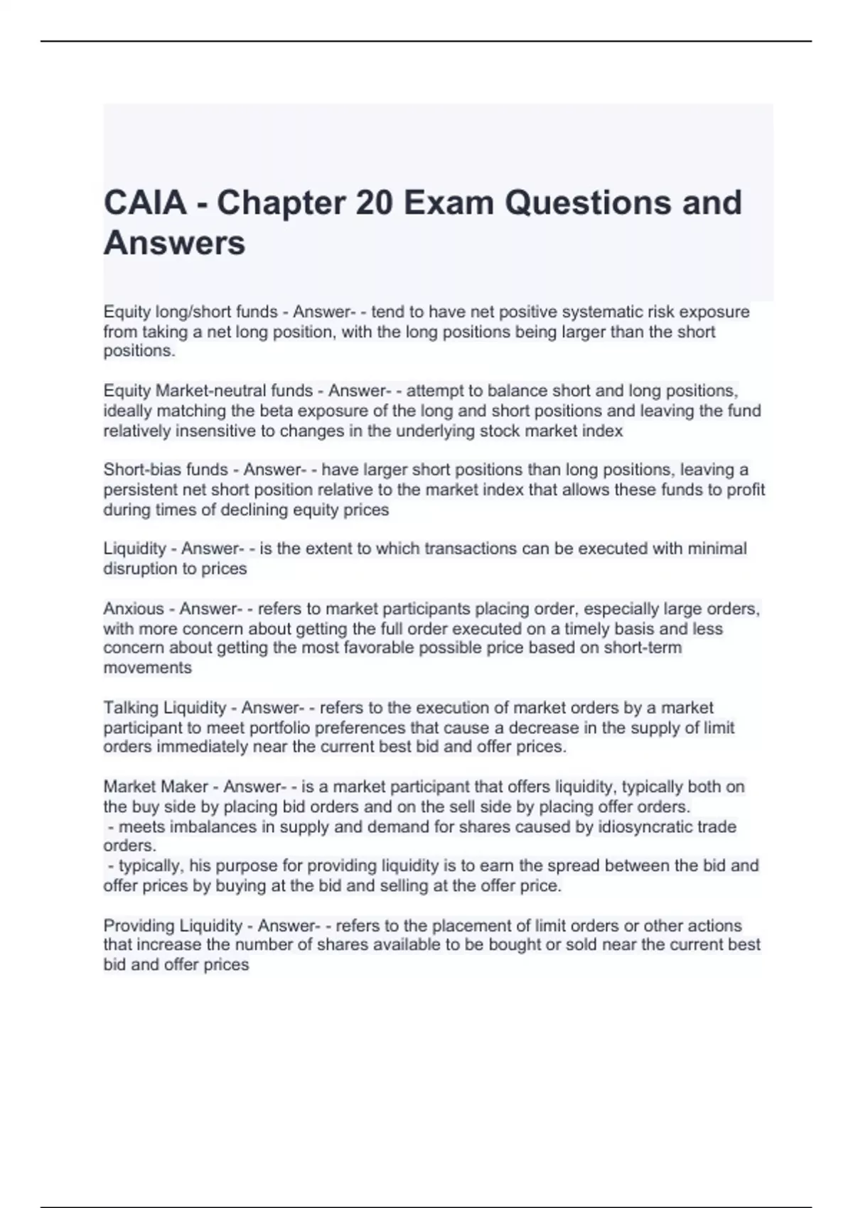 CAIA - Chapter 20 Exam Questions and Answers-Graded A