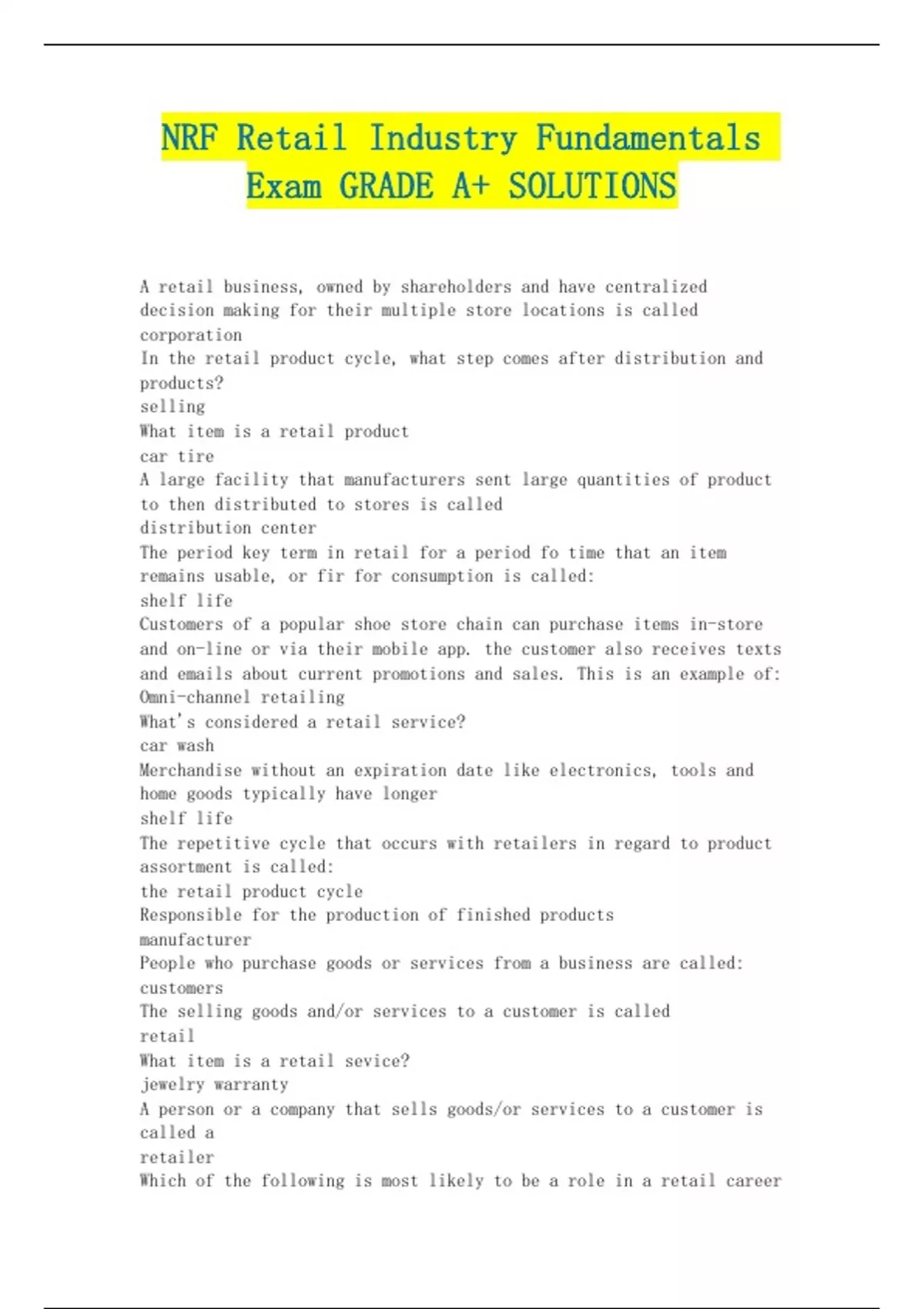 Exam GRADE A+ SOLUTIONS