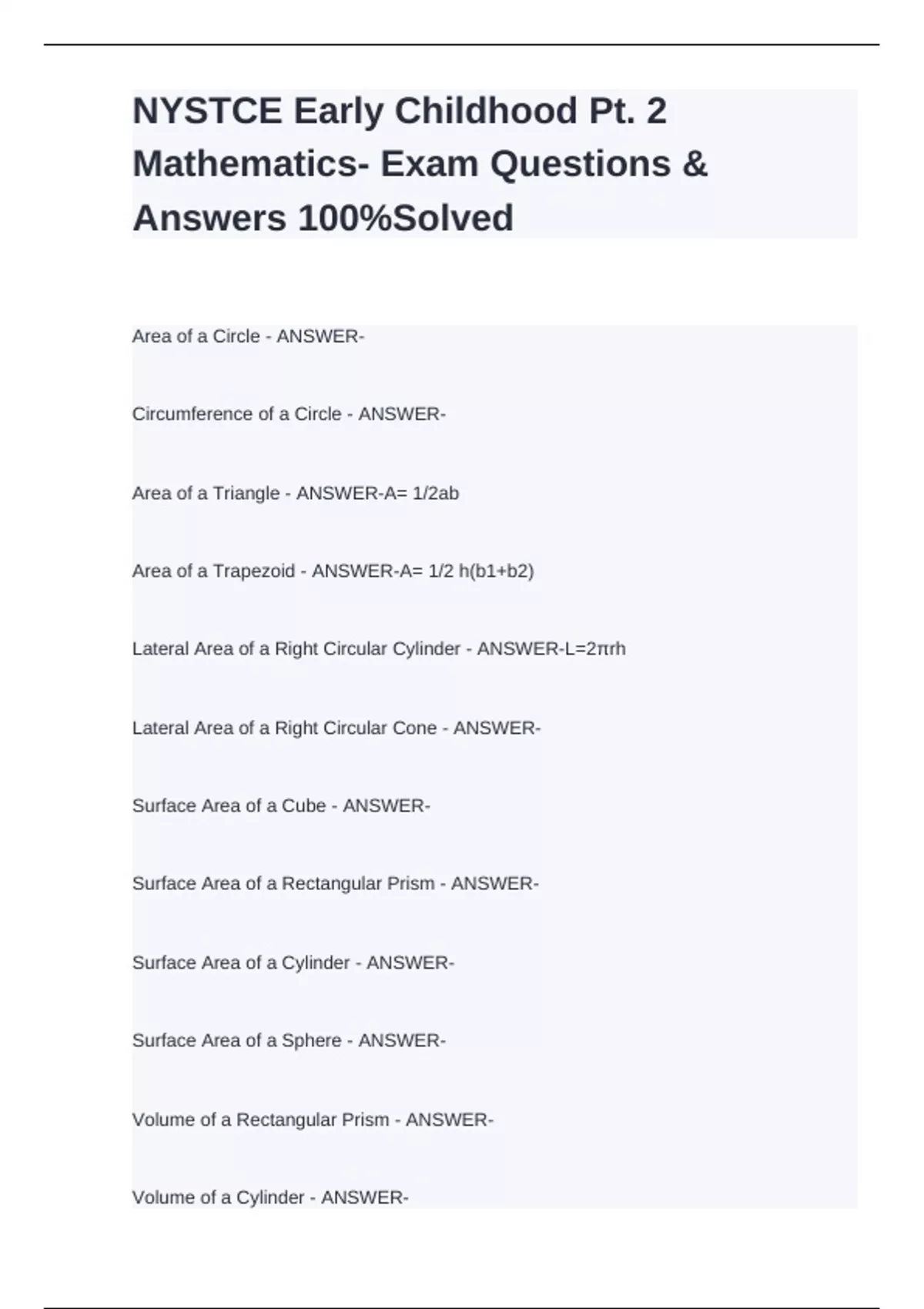 NYSTCE Early Childhood Pt. 2 Mathematics- Exam Questions & Answers 100%Solved