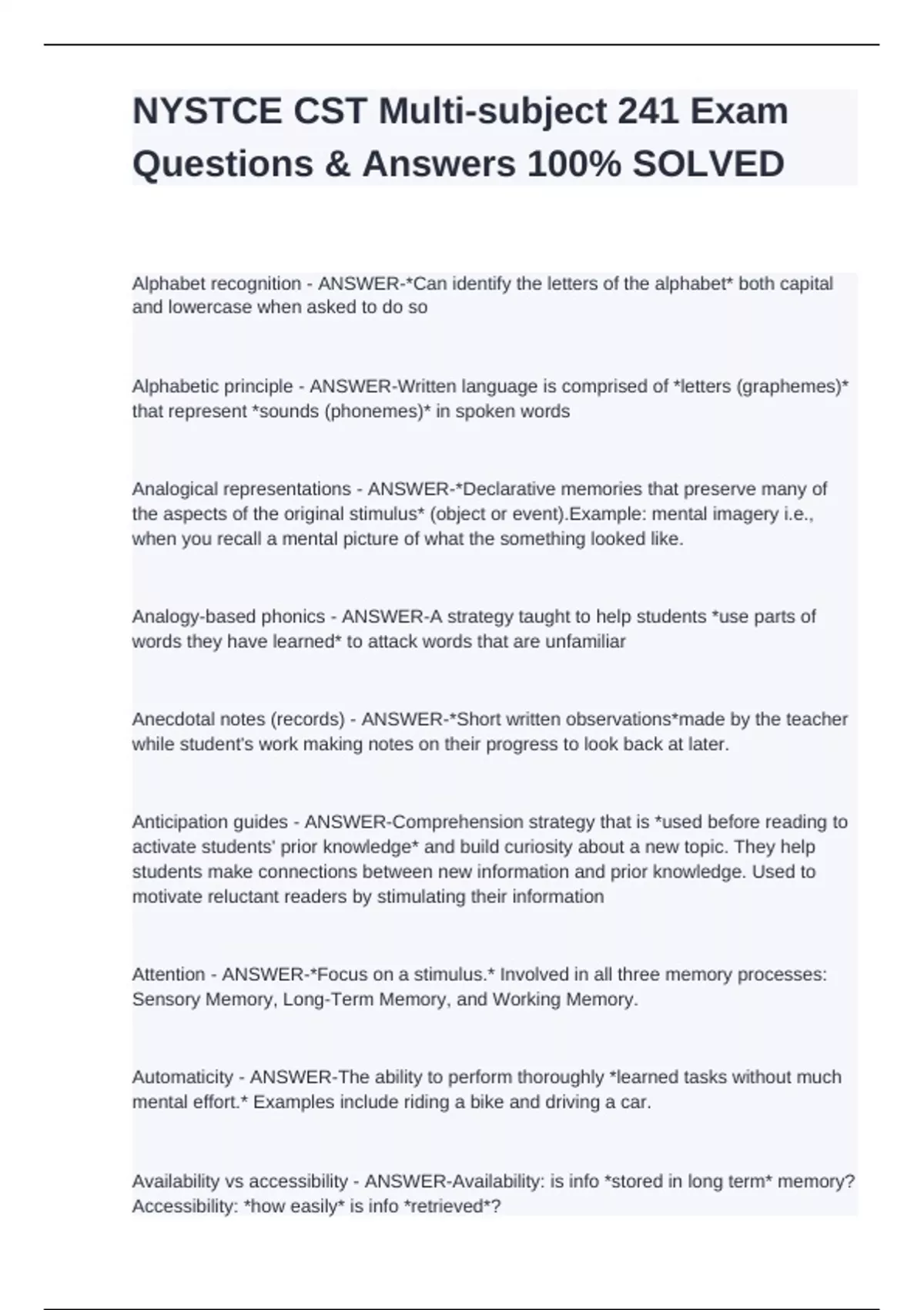 NYSTCE CST Multi-subject 241 Exam Questions & Answers 100% SOLVED