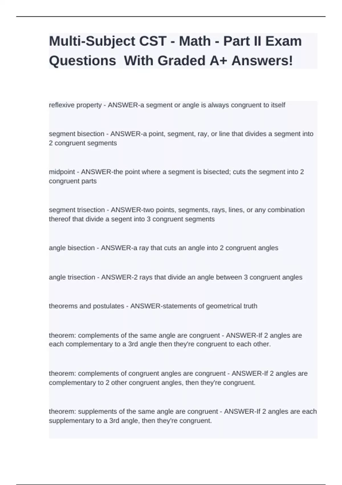 Multi-Subject CST - Math - Part II Exam Questions With Graded A+ Answers!