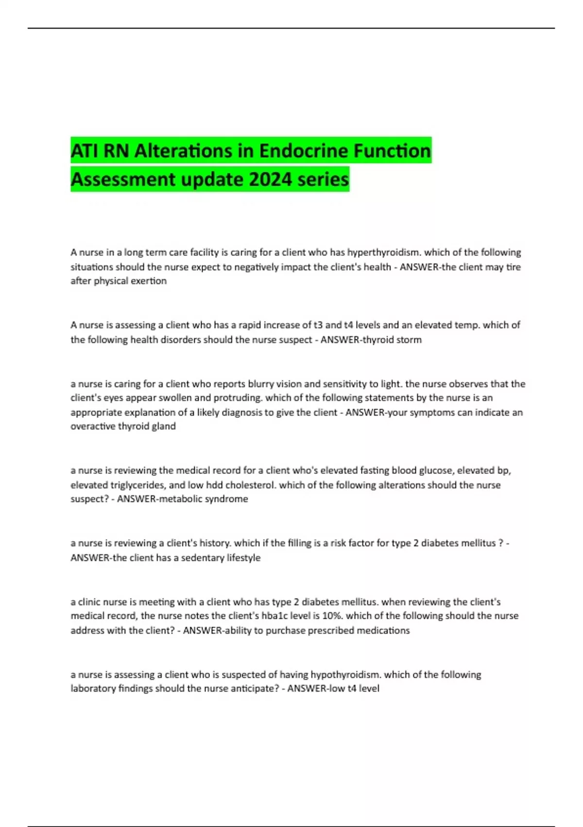ati rn alterations in endocrine function 2024