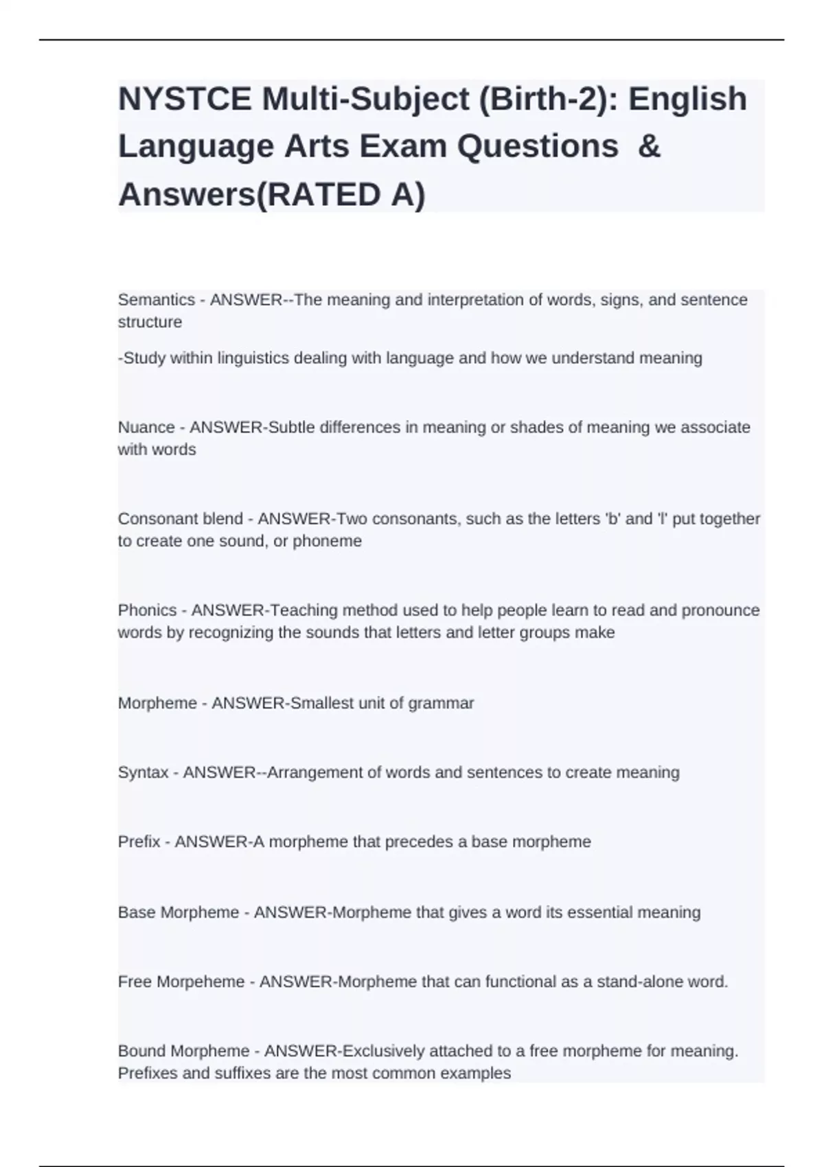 NYSTCE Multi-Subject (Birth-2): English Language Arts Exam Questions & Answers(RATED A)