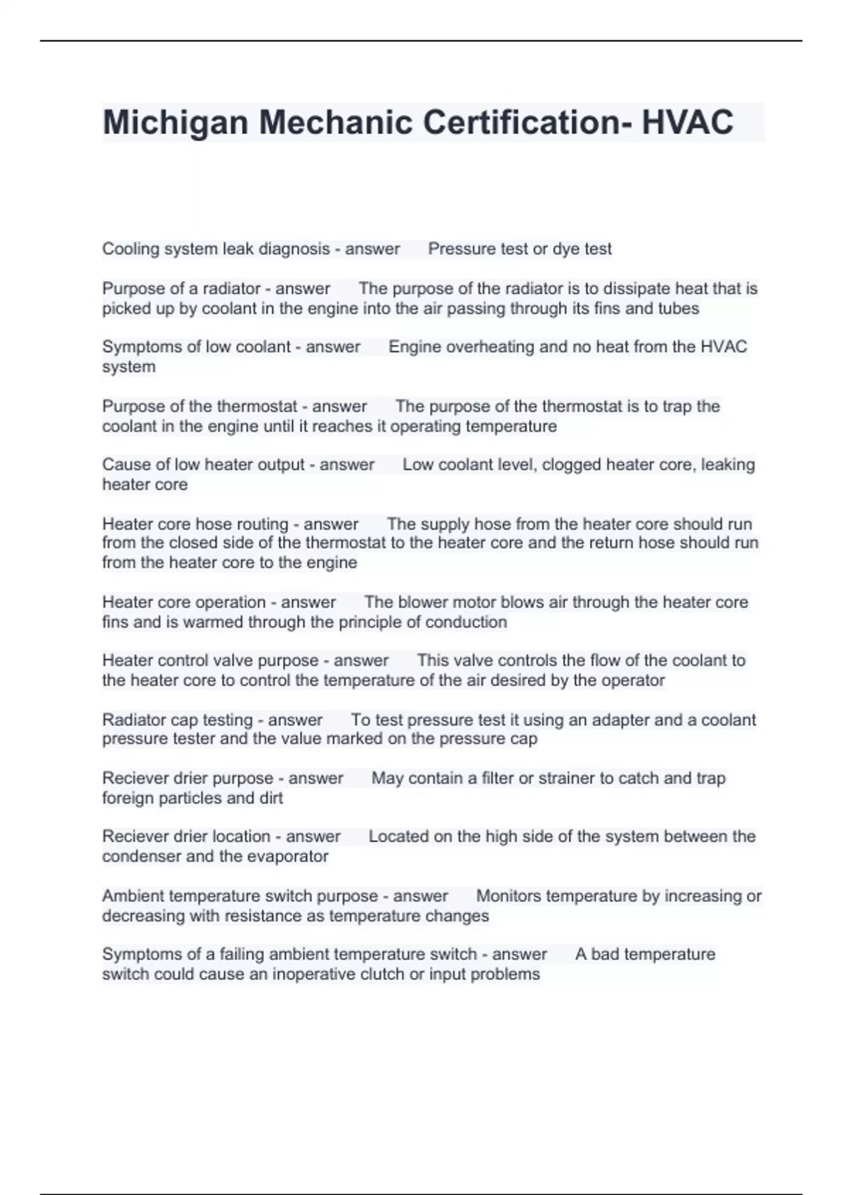 Symptoms of low coolant - answer Engine overheating and no heat from the HVAC system