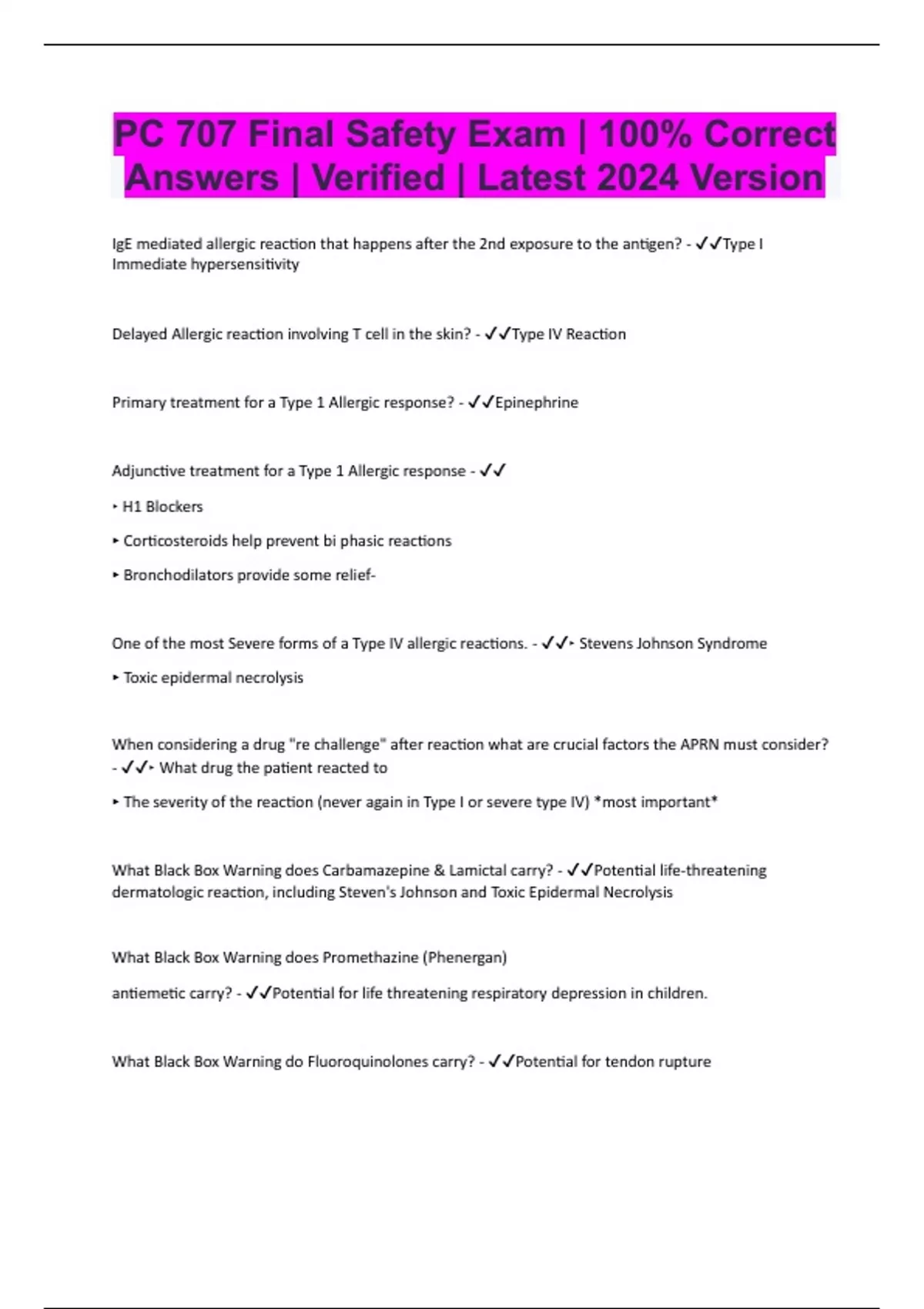 PC 707 Final Safety Exam | 100% Correct Answers | Verified | Latest 2024 Version