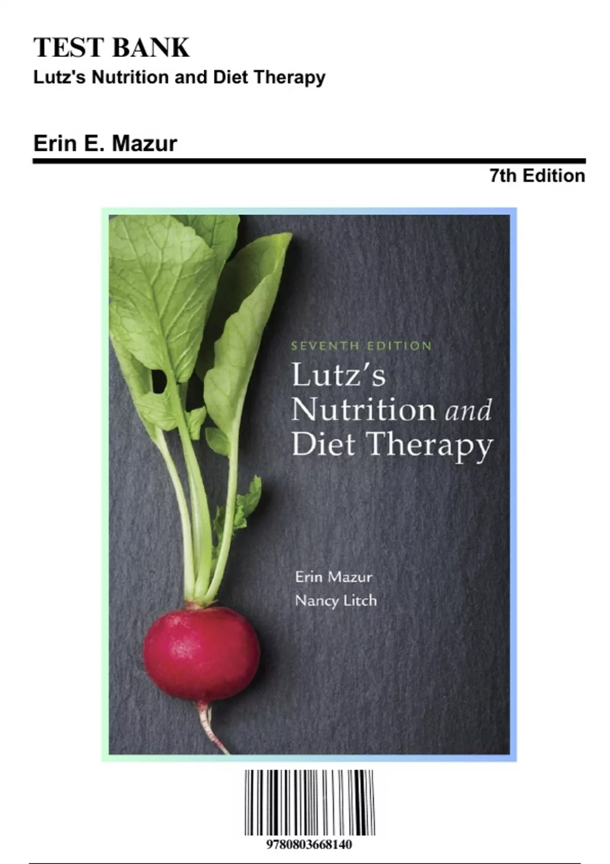 Test Bank for Lutz's Nutrition and Diet Therapy, 7th Edition by Erin E. Mazur, 9780803668140, Covering Chapters 1-24 | Includes Rationales