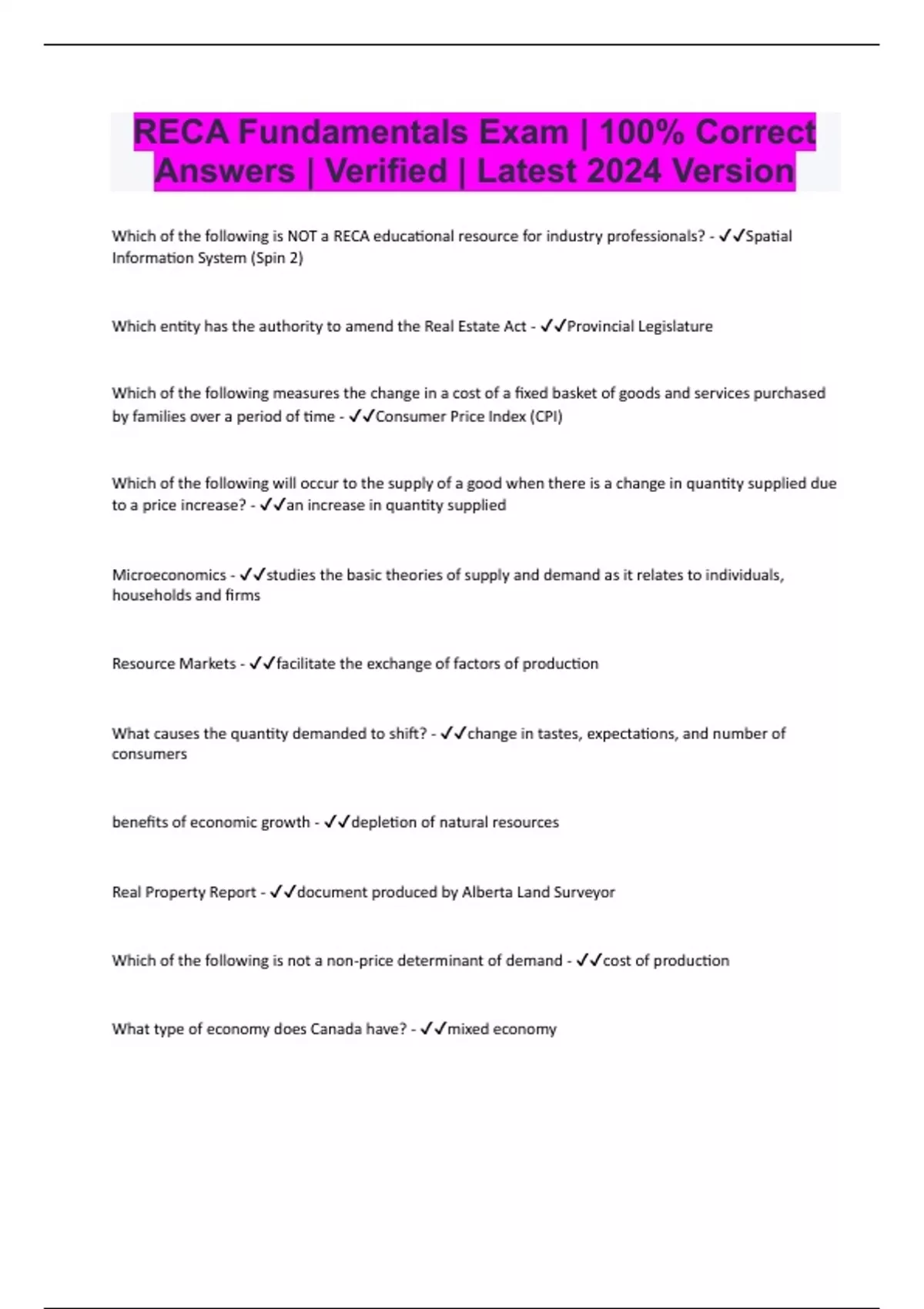 RECA Fundamentals Exam | 100% Correct Answers | Verified | Latest 2024 Version