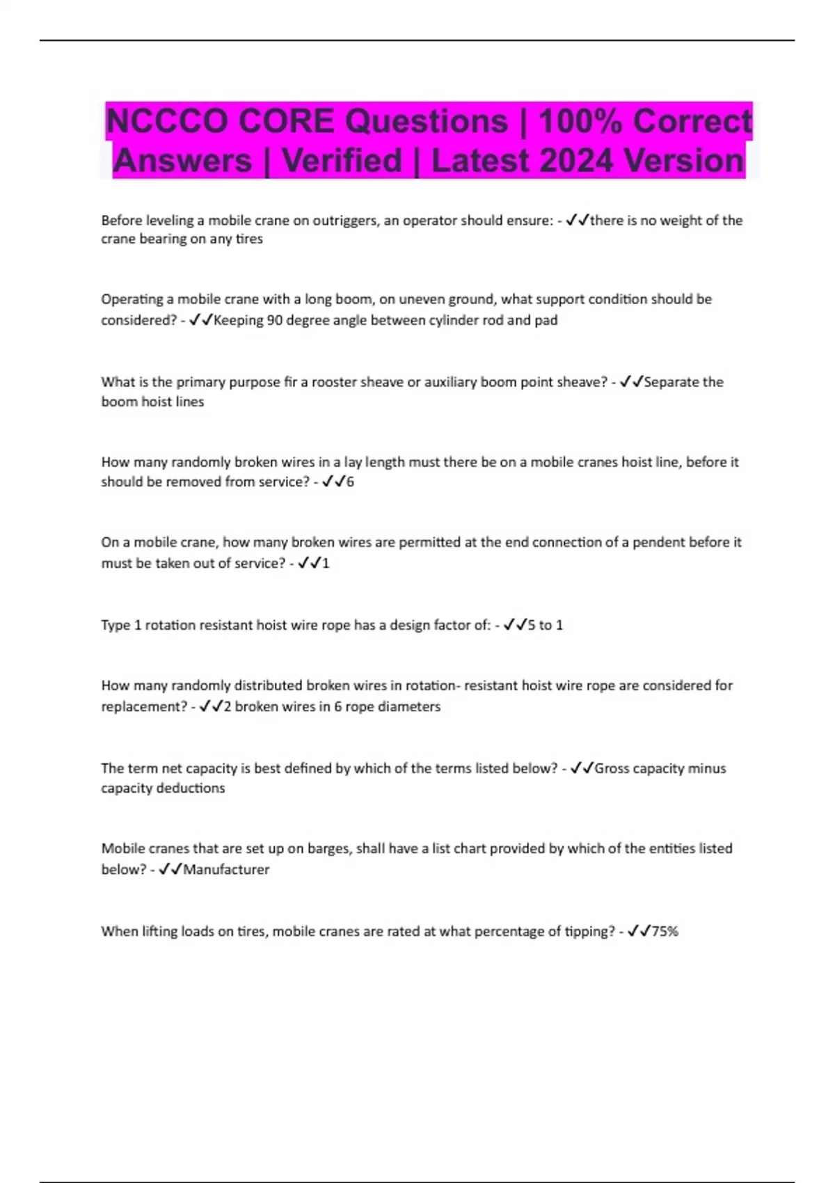 NCCCO CORE Questions | 100% Correct Answers | Verified | Latest 2024 Version