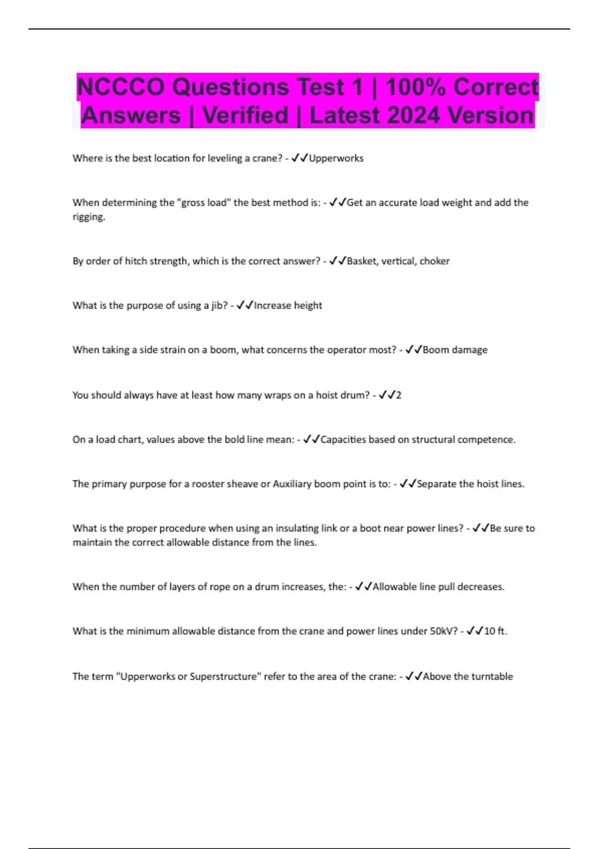 NCCCO Questions Test 1 | 100% Correct Answers | Verified | Latest 2024 Version