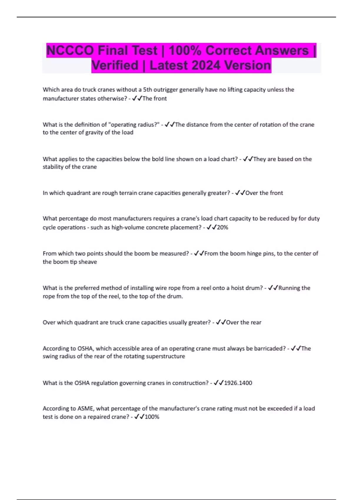 NCCCO Final Test | 100% Correct Answers | Verified | Latest 2024 Version