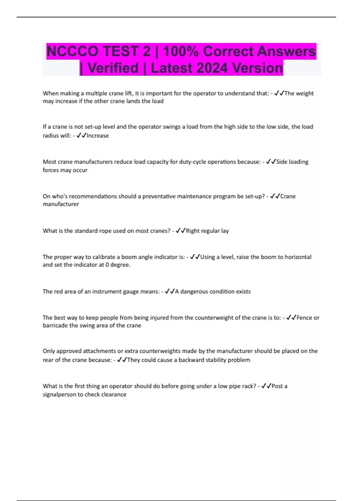 NCCCO TEST 2 | 100% Correct Answers | Verified | Latest 2024 Version
