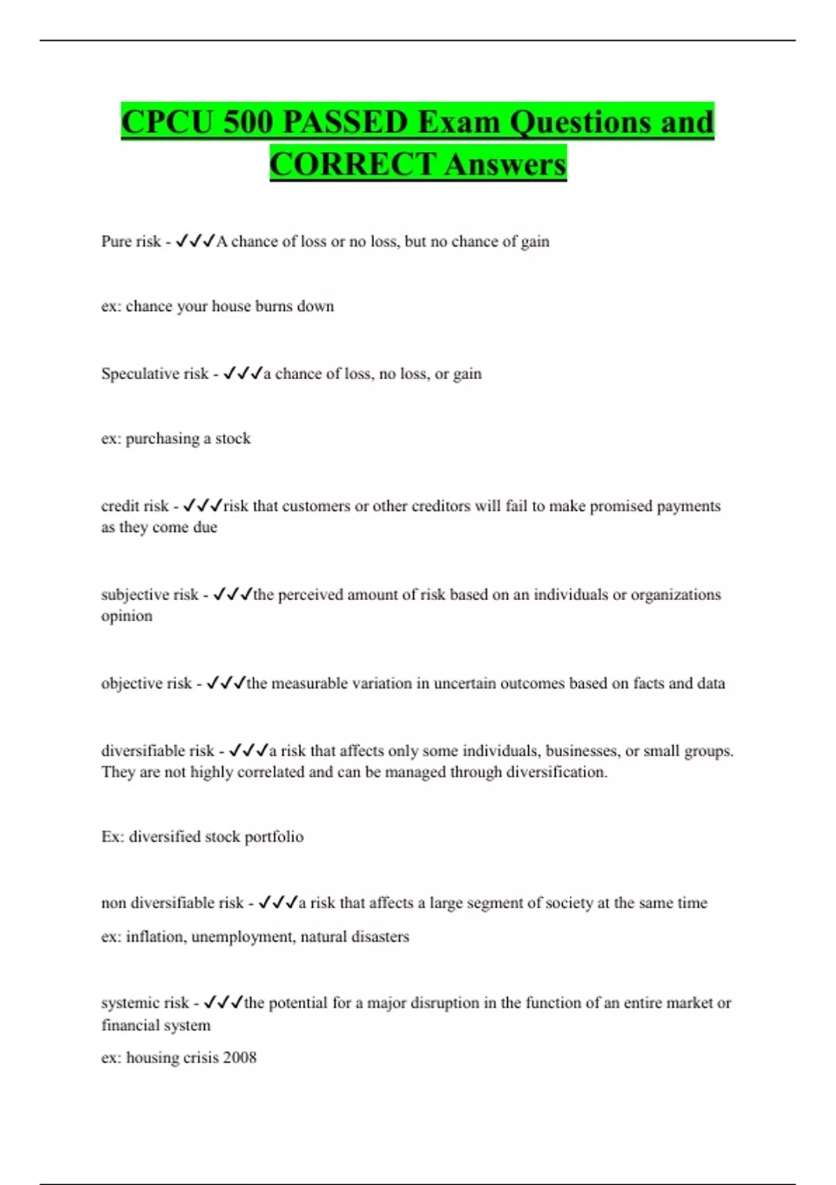 CPCU 500 PASSED Exam Questions and CORRECT Answers
