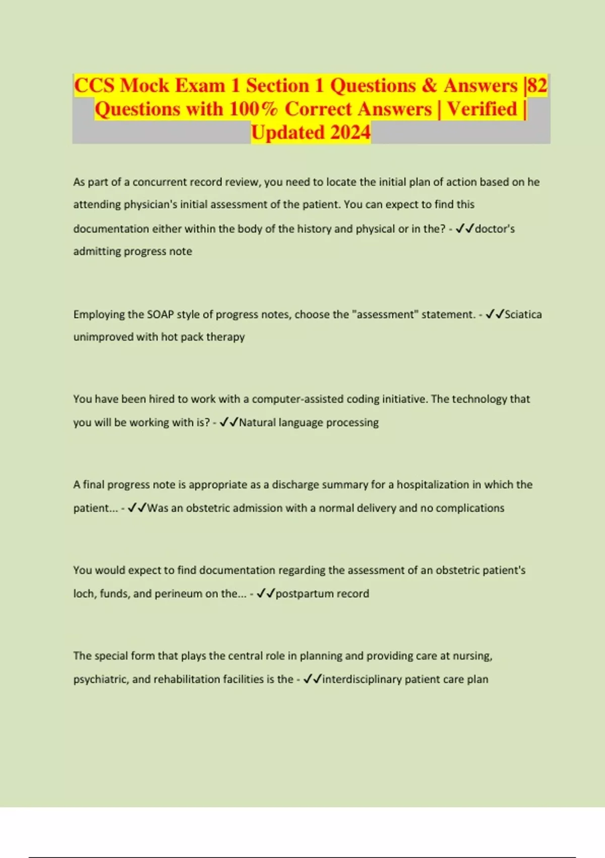 CCS Mock Exam 1 Section 1 Questions & Answers |82 Questions with 100% Correct Answers | Verified | Updated 2024