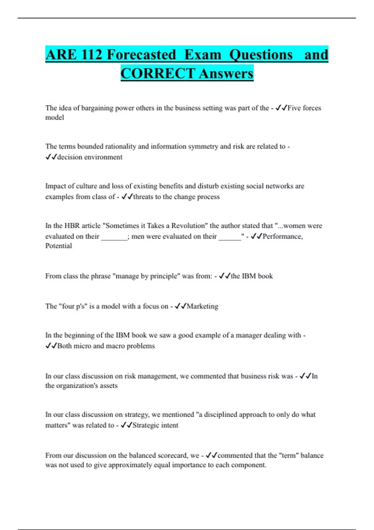 ARE 112 Forecasted Exam Questions and CORRECT Answers