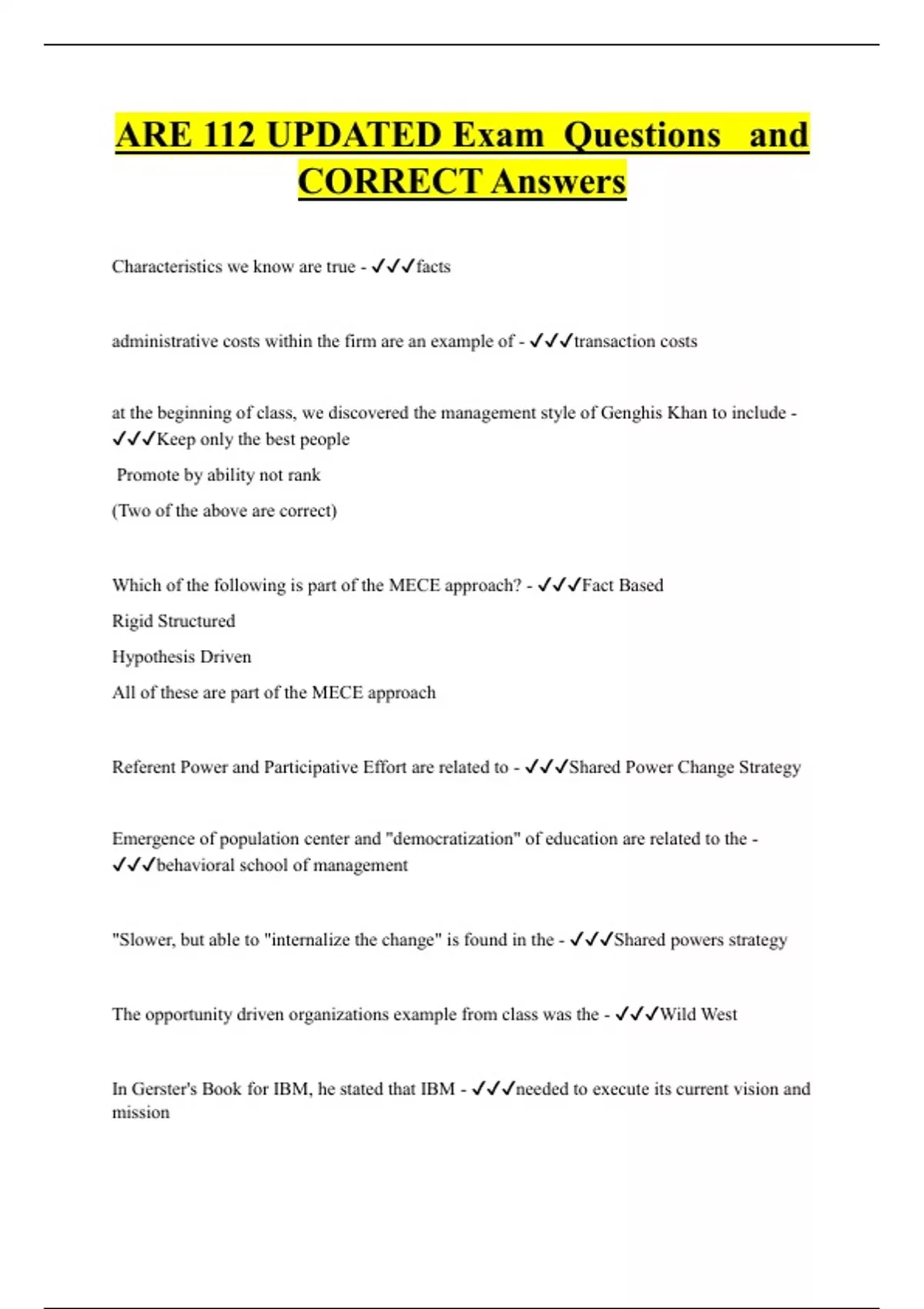 ARE 112 UPDATED Exam Questions and CORRECT Answers