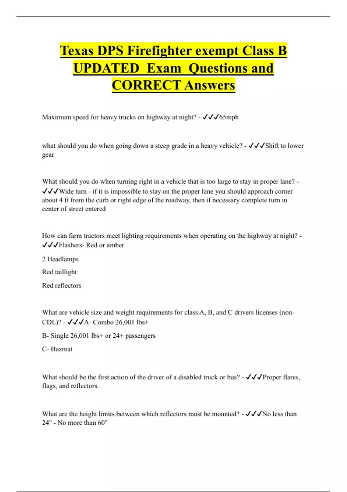 Texas DPS Firefighter exempt Class B UPDATED Exam Questions and CORRECT Answers