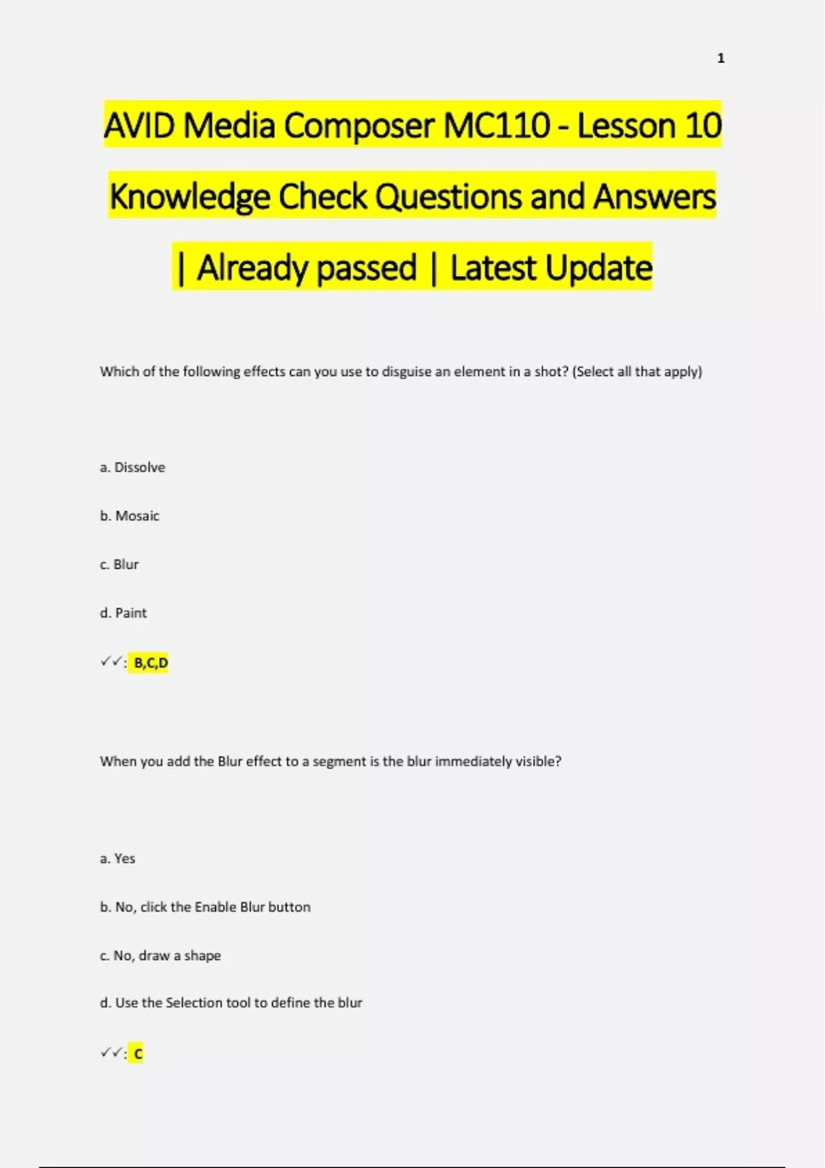 Avid Media Composer Keyboard Shortcuts Questions and Answers | Already passed | Latest Update