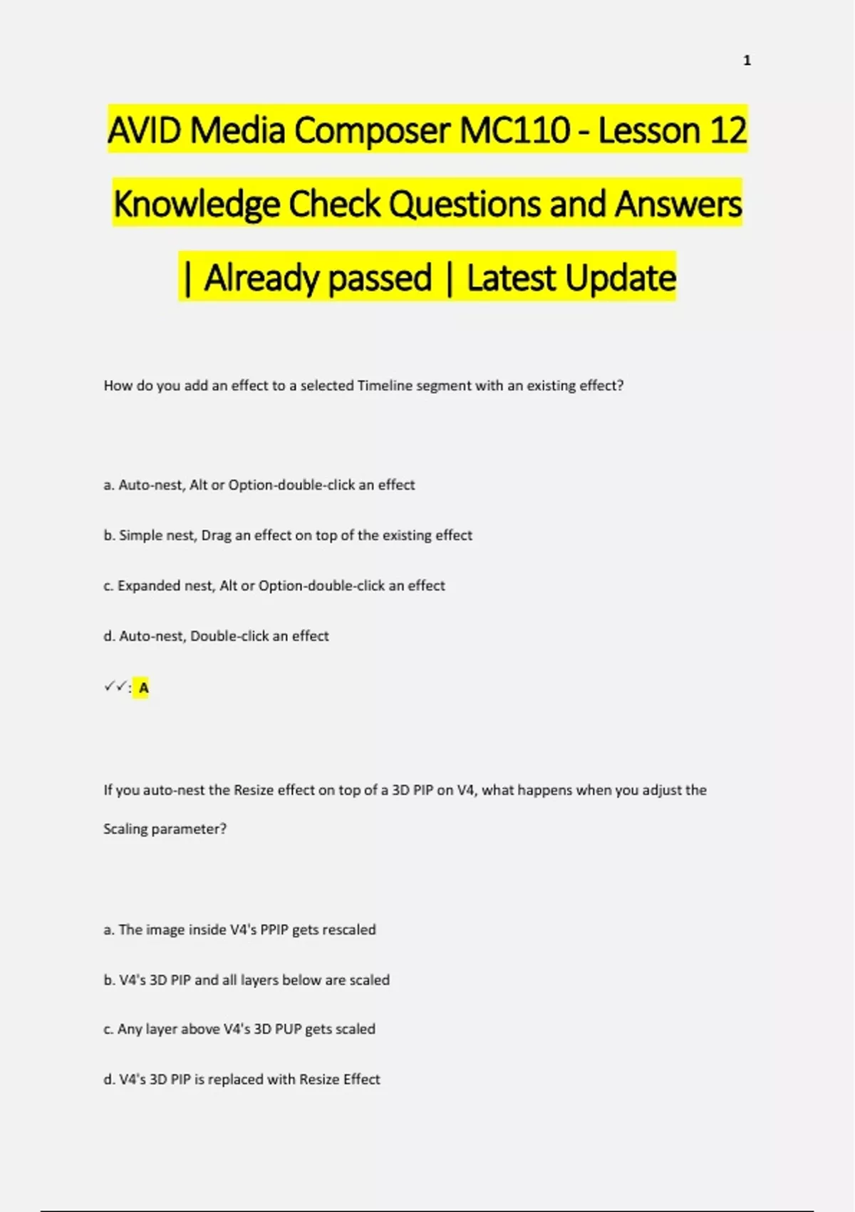 AVID Media Composer MC110 - Lesson 12 Knowledge Check Questions and Answers | Already passed | Latest Update