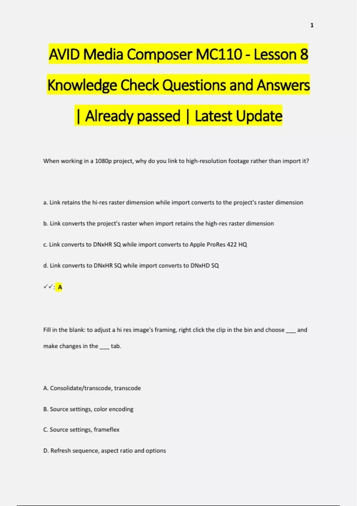 AVID Media Composer MC110 - Lesson 8 Knowledge Check Questions and Answers | Already passed | Latest Update