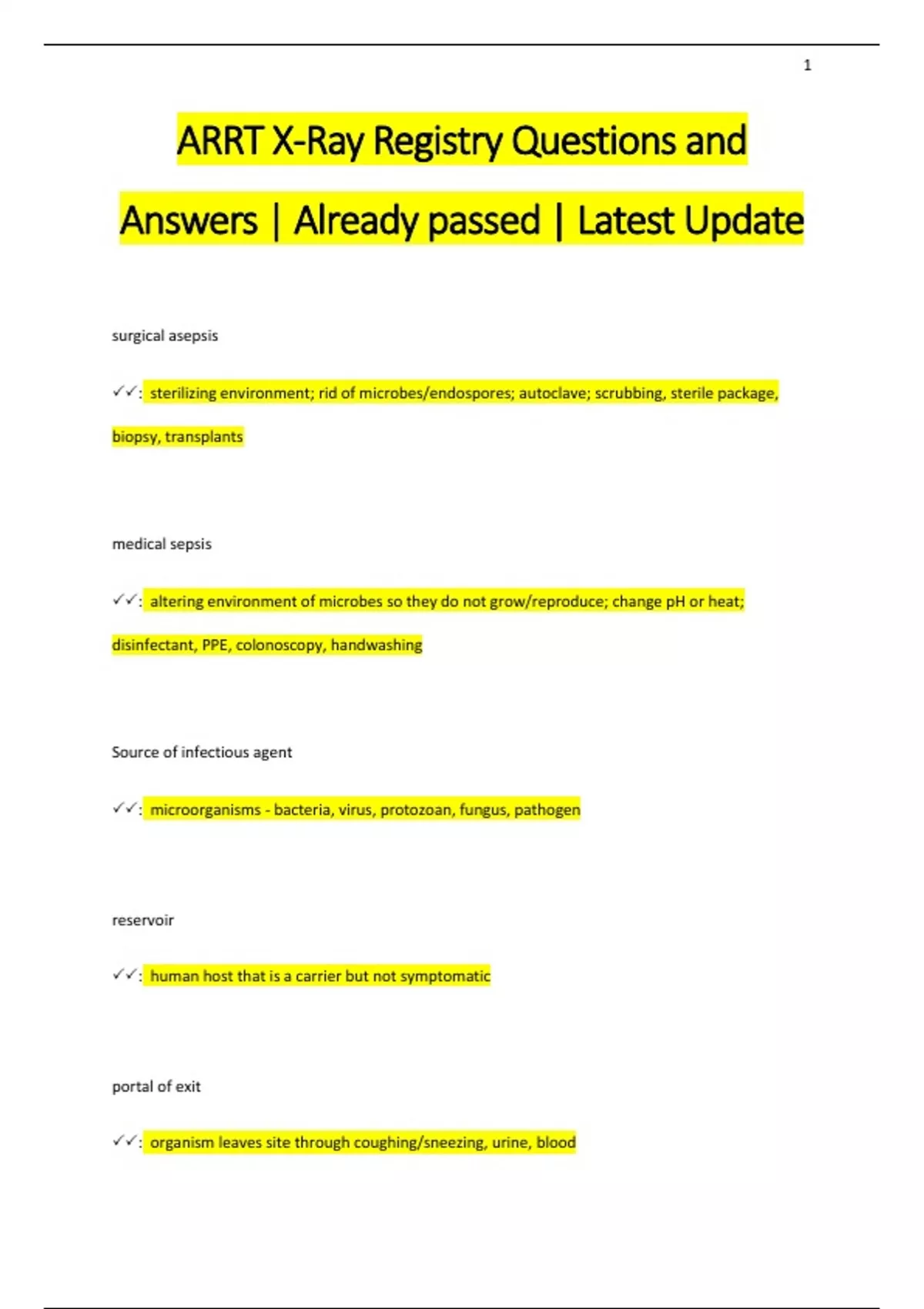 ARRT X-Ray Registry Questions and Answers | Already passed | Latest Update