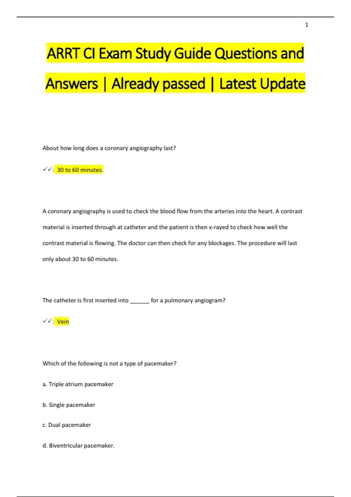 ARRT CI Exam Study Guide Questions and Answers | Already passed | Latest Update