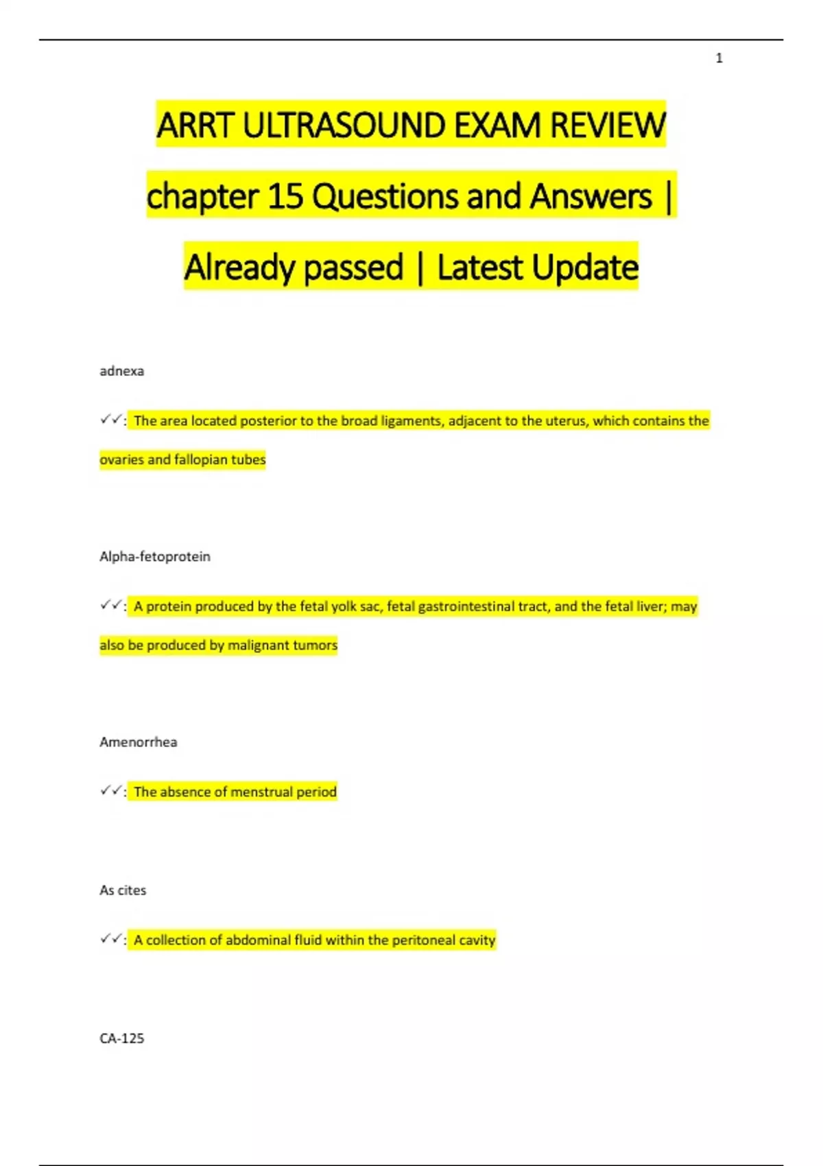 ARRT ULTRASOUND EXAM REVIEW chapter 15 Questions and Answers | Already passed | Latest Update