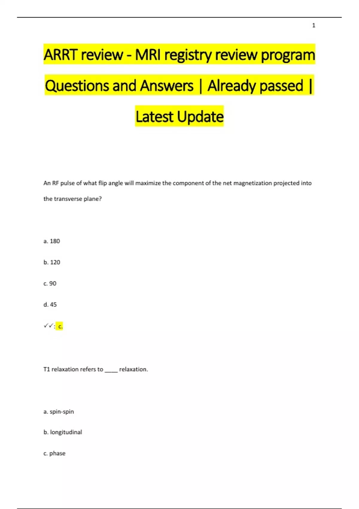 ARRT review - MRI registry review program Questions and Answers | Already passed | Latest Update