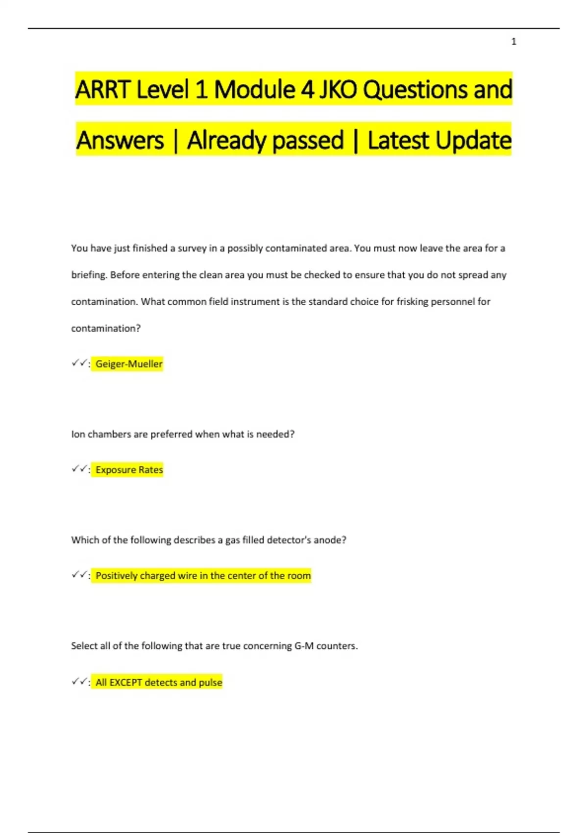 ARRT Level 1 Module 4 JKO Questions and Answers | Already passed | Latest Update