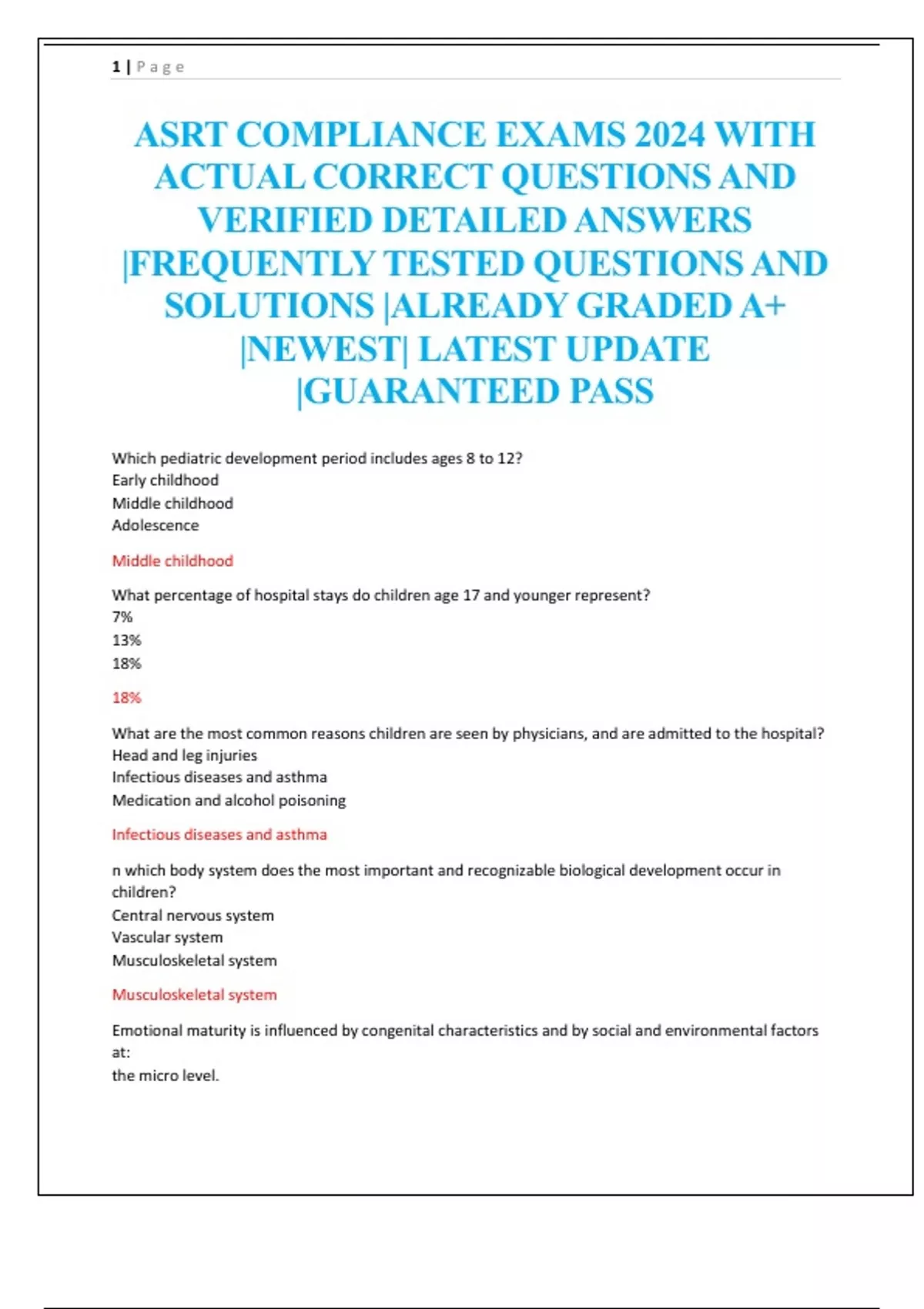 ASRT COMPLIANCE EXAMS 2024 WITH ACTUAL CORRECT QUESTIONS AND VERIFIED DETAILED ANSWERS |FREQUENTLY TESTED QUESTIONS AND SOLUTIONS |ALREADY GRADED A+ |NEWEST| LATEST UPDATE |GUARANTEED PASS
