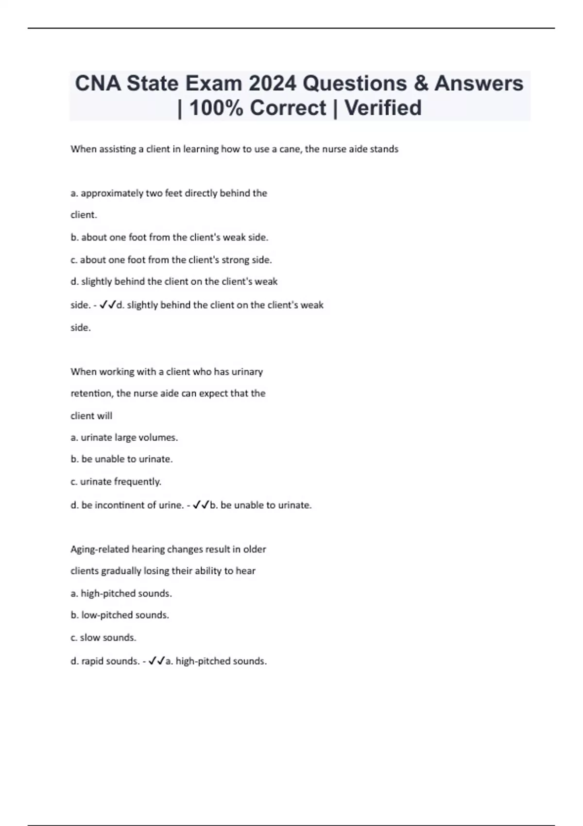 CNA State Exam 2024 Questions & Answers | 100% Correct | Verified
