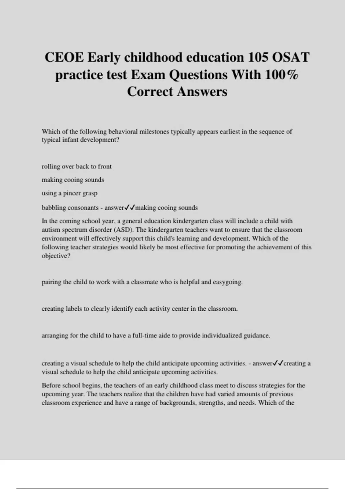 CEOE Early childhood education 105 OSAT practice test Exam Questions With 100% Correct Answers